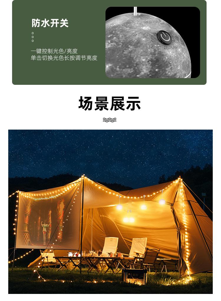 Luces de camping nuevas transfronterizas atmósfera exterior decoración de tienda toldo linterna campamento luces pequeñas de colores luces de cadena