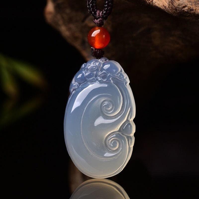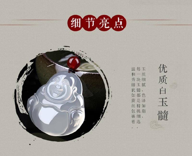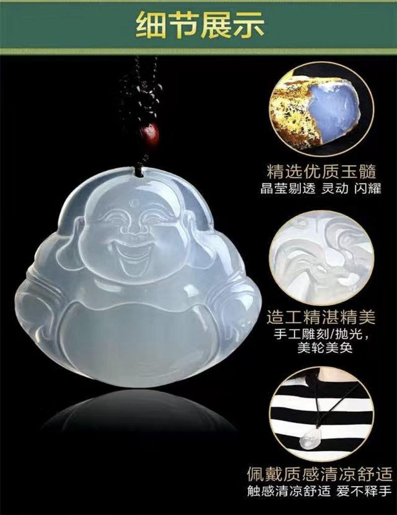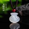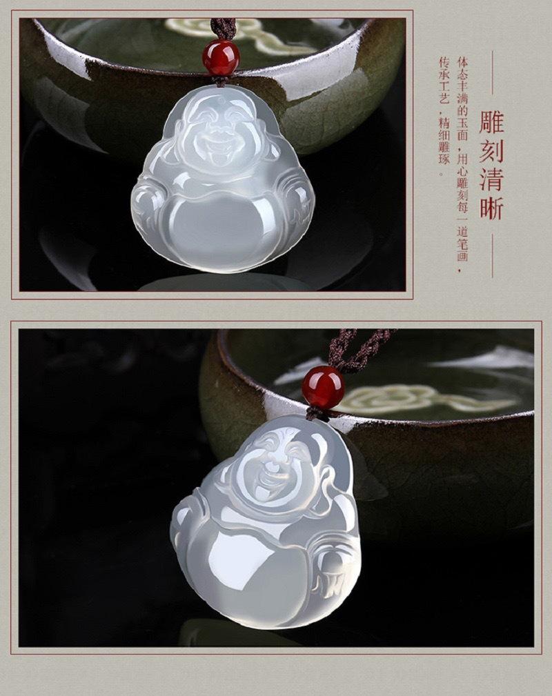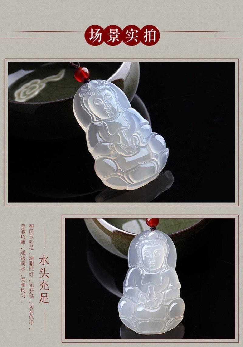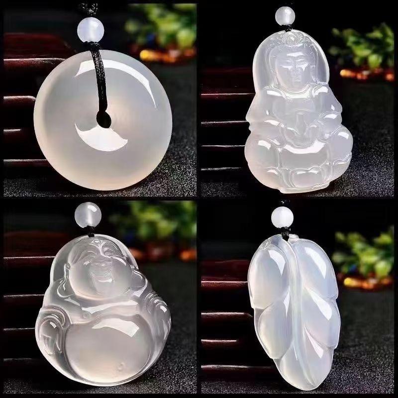 Colgante de Calcedonia Blanca Hielo Natural Guanyin Buda Hebilla Ping An Fu Colgante de Frijol Colgante de Jade Natural Collar al por mayor