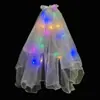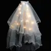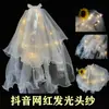 Velo luminoso famoso en internet con corona de perlas de doble capa ligera, velo suave con lazo de cinta, tocado de velo luminoso para niños