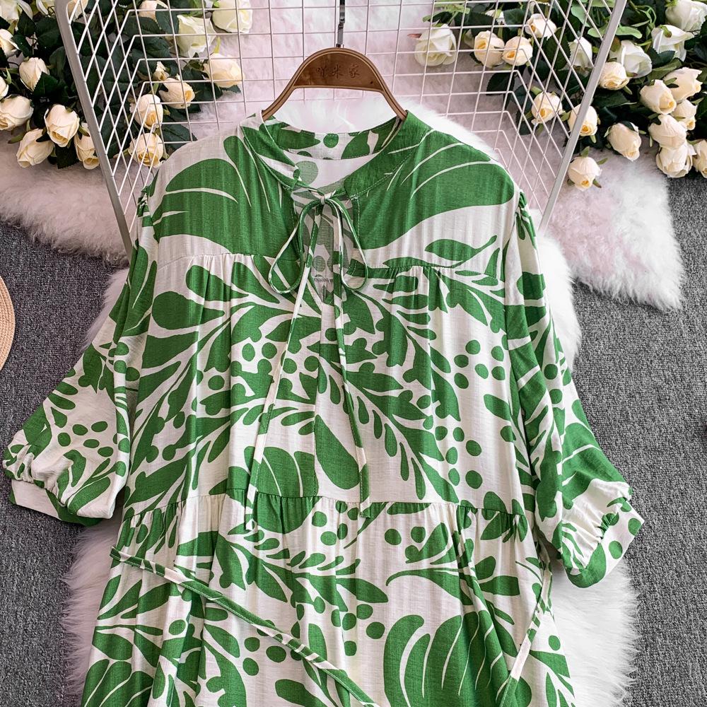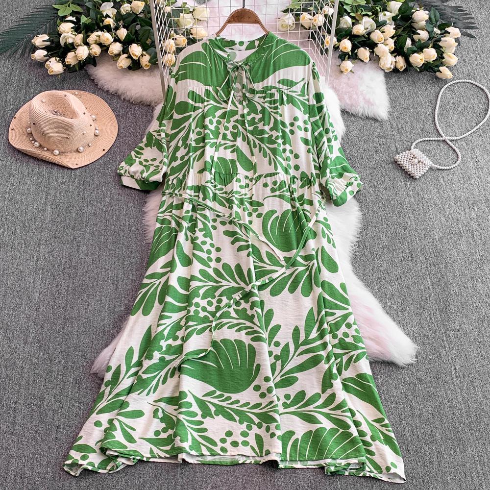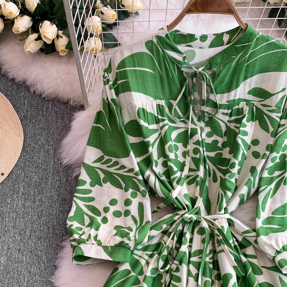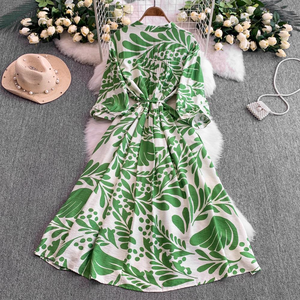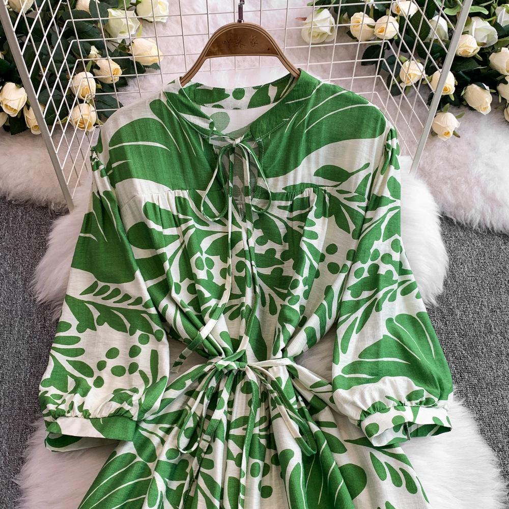 Compra Vestido Francés para Mujer 2025 Verano Nuevo Cuello Redondo Manga Linterna Cintura con Cordones Adelgazante Plisado Línea A Falda Larga al por mayor en Joom.pro