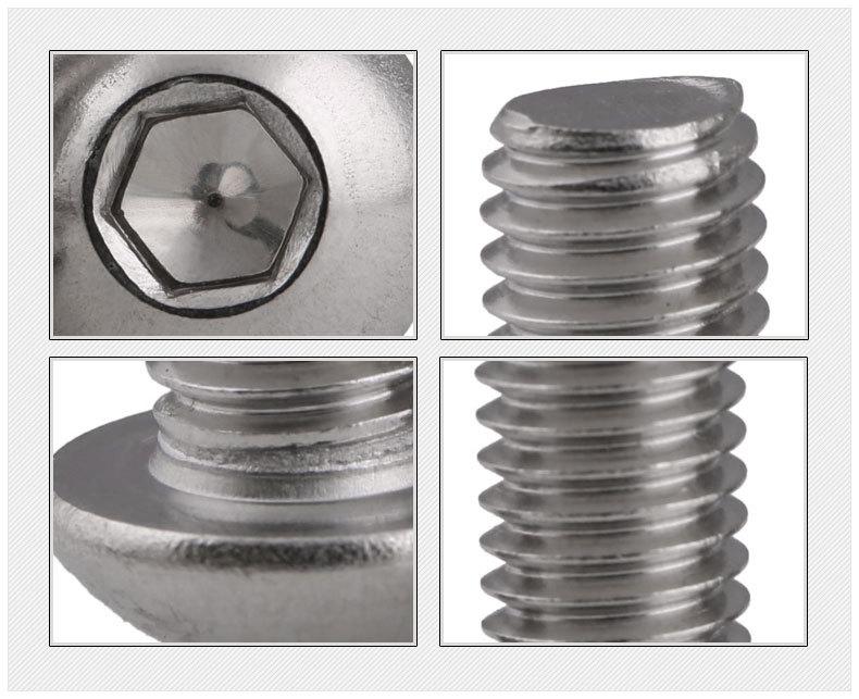 | nombre | Tornillo de cabeza redonda con hexágono interior | tratamiento de superficies | Color acero inoxidable |