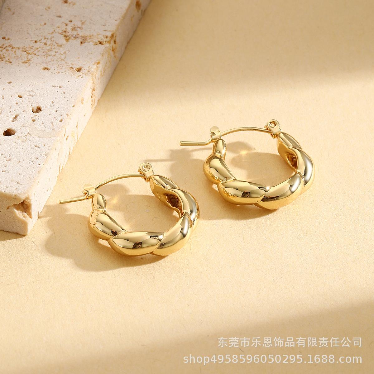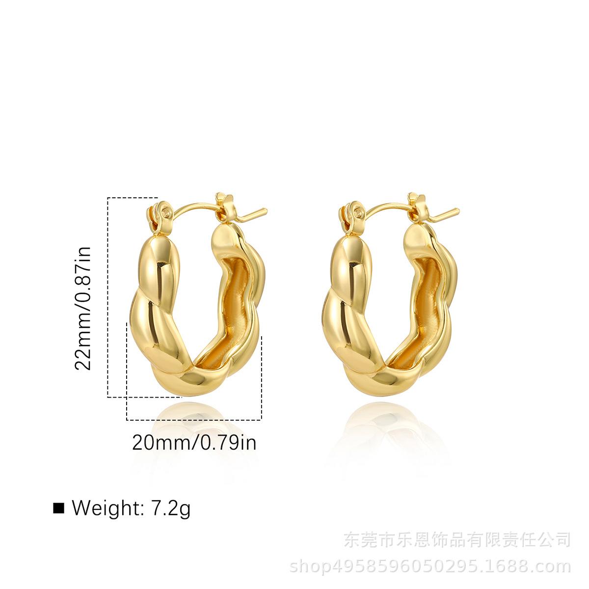 Aretes de viento europeo y americano transfronterizo de acero inoxidable twist twist viento neutro aretes dorados aretes de moda redondos aretes de alta gama