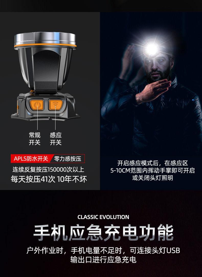 Faro LED superbrillante luz fuerte recargable para exteriores superbrillante pesca nocturna lámpara de minero inducción montado en la cabeza linterna para exteriores