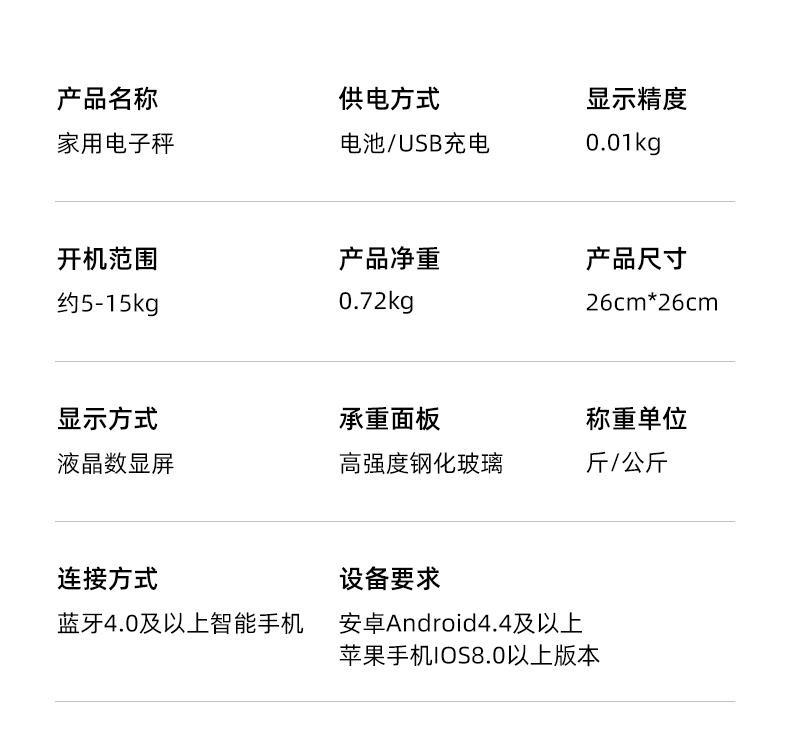 Hao Yue White Weight Scale Battery Model [No App] High Precision/Express Delivery