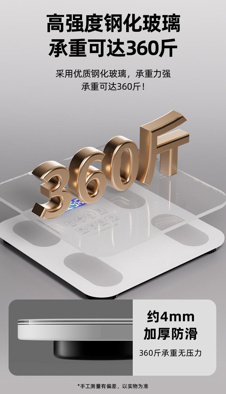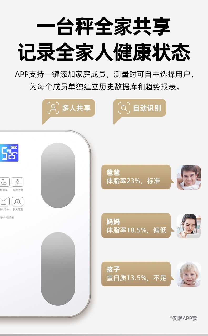 Dark Night Body Fat Scale Rechargeable Model【Mobile App Interconnection】Long-lasting Battery Life/Multiple Body Health Data