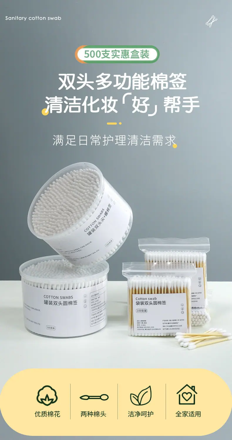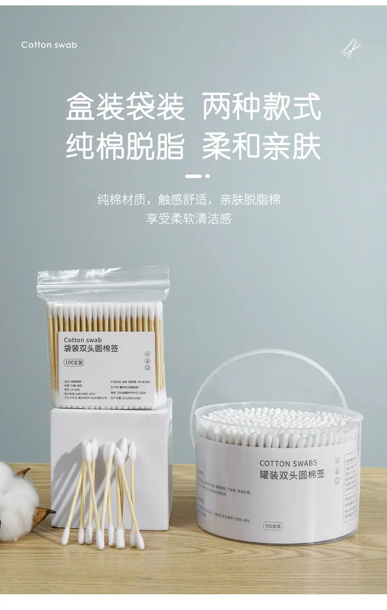 Hisopos de Algodón En Caja Doble Punta Desechables para Limpieza Doméstica Hisopos de Algodón para Maquillaje Hisopos de Algodón de Punta para Limpieza de Oídos Palitos de Madera Venta al Por Mayor