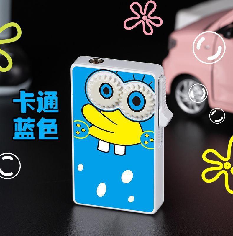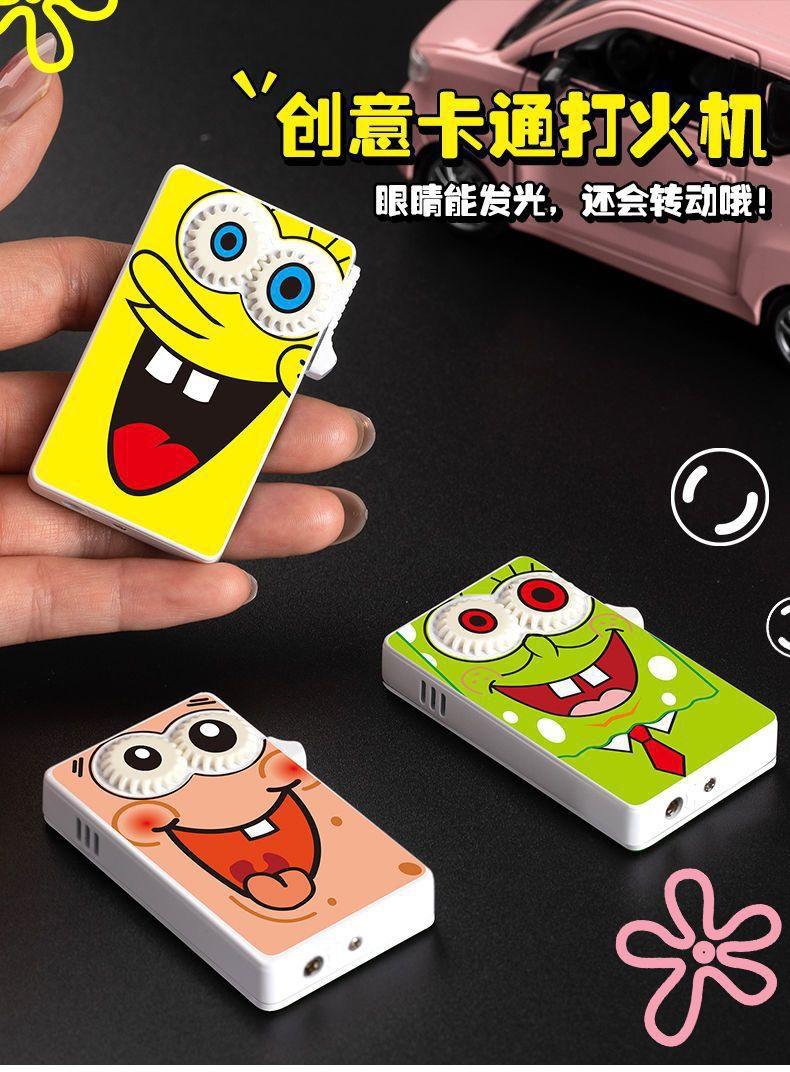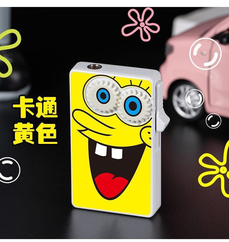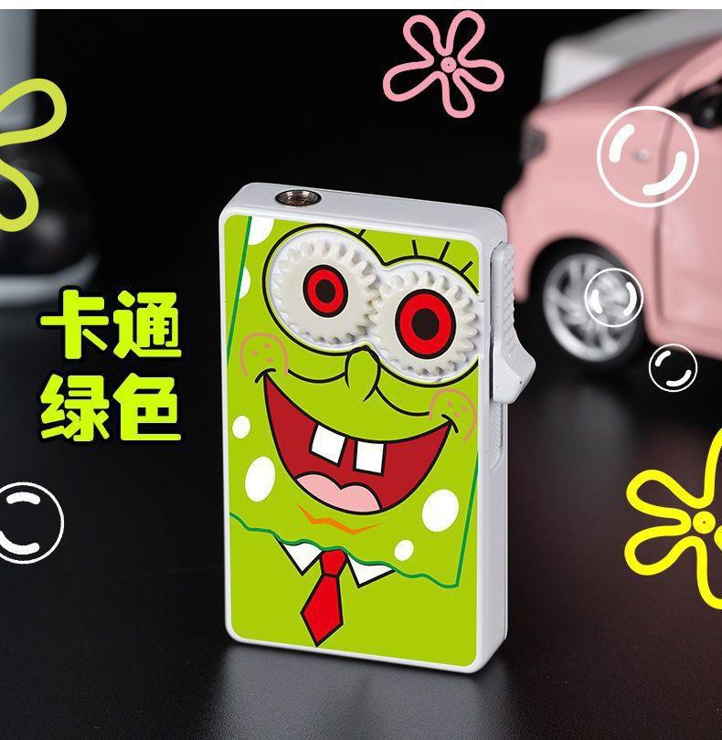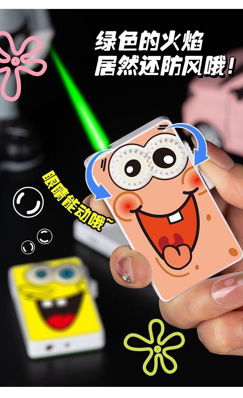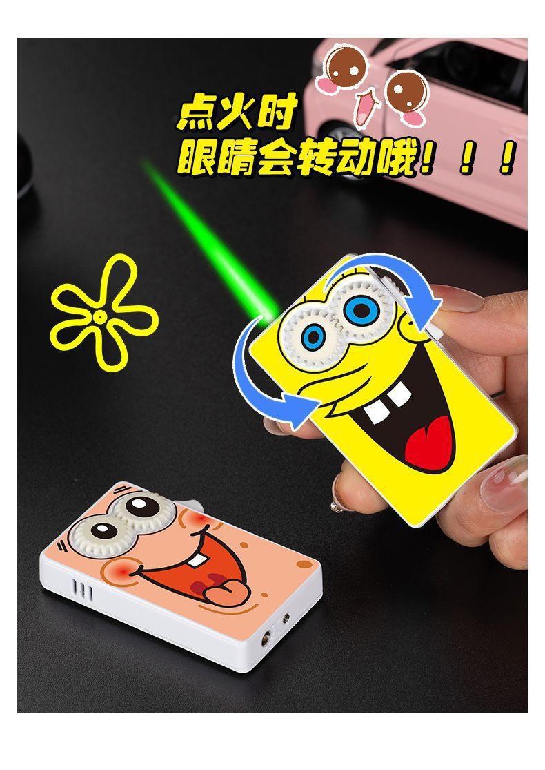 Encendedor de dibujos animados divertido con ojos giratorios, a prueba de viento, fuego verde, creativo, regalo de cumpleaños