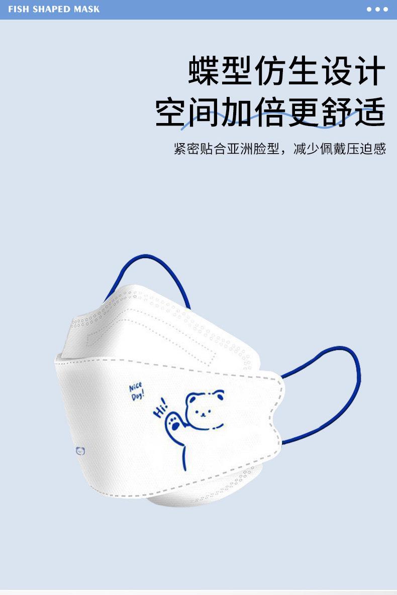 Azul Klein Mascarilla con forma de pez Estéreo para colgar en la oreja KN95 A prueba de polvo Empaque independiente Mascarilla desechable Venta al por mayor