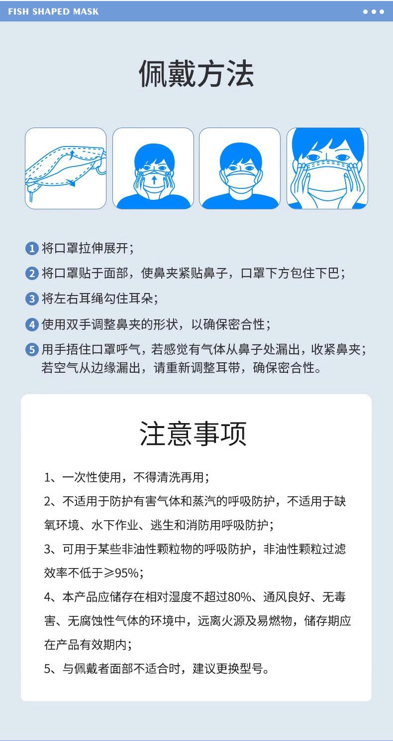 Compra Azul Klein Mascarilla con forma de pez Estéreo para colgar en la oreja KN95 A prueba de polvo Empaque independiente Mascarilla desechable Venta al por mayor al por mayor en Joom.pro