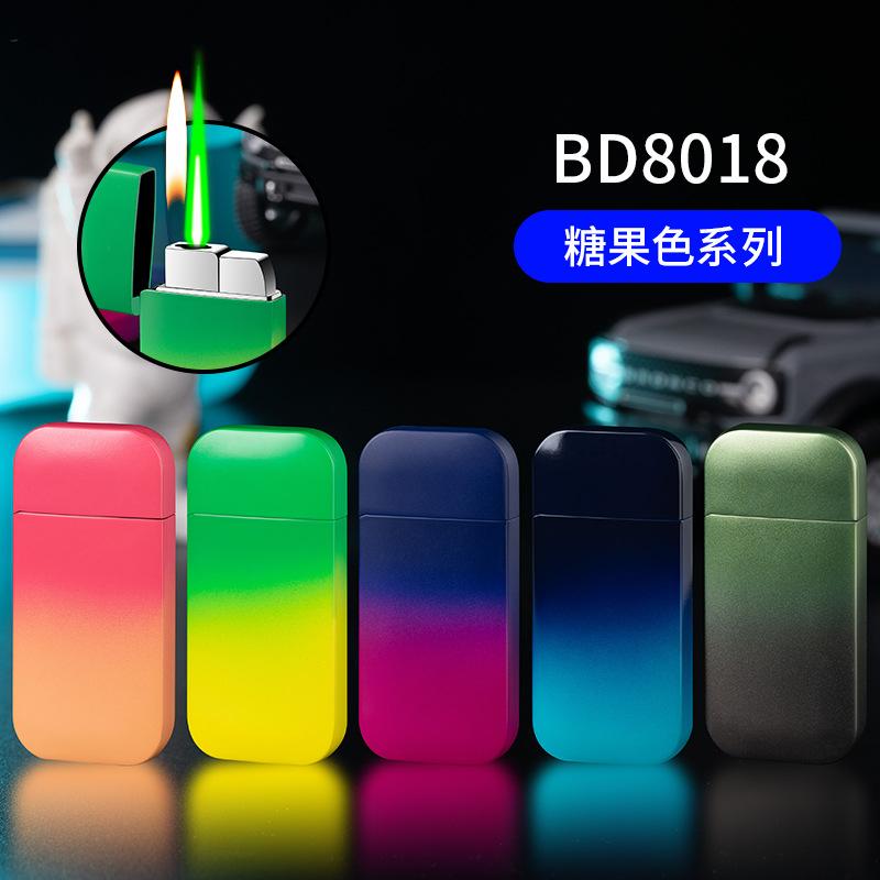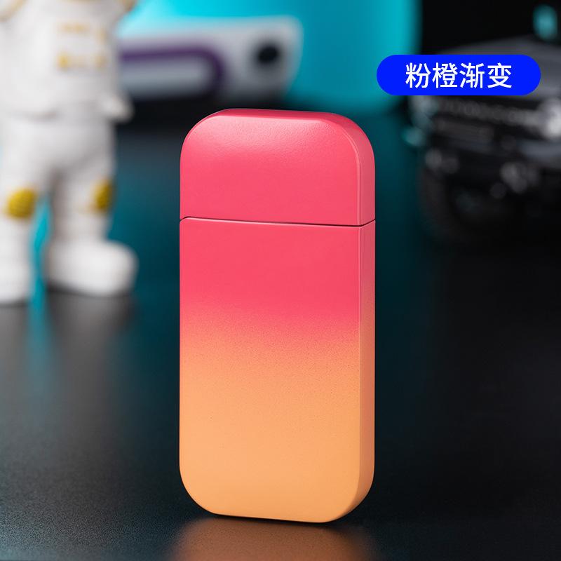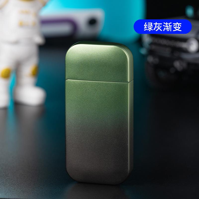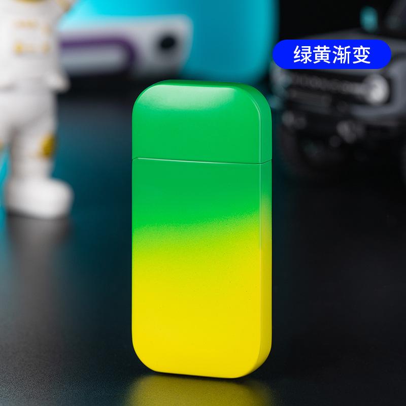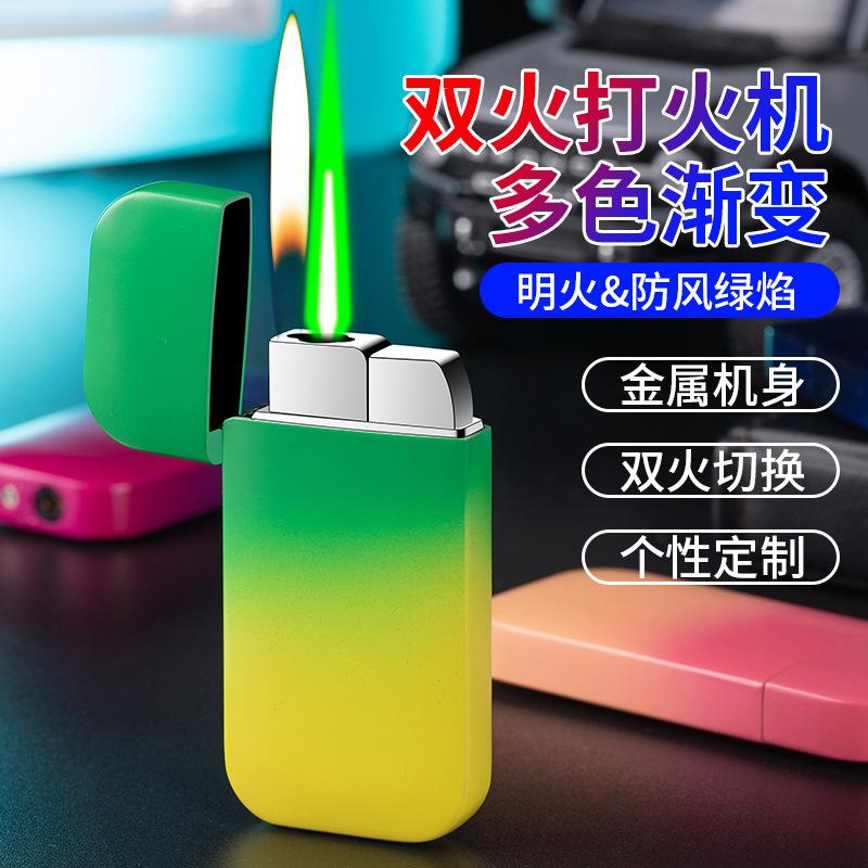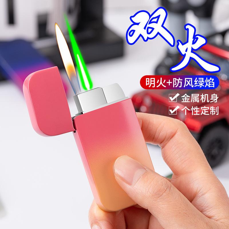 Procesamiento y Personalización de Encendedor Inflatable a Prueba de Viento de Doble Encendido, Degradado Multicolor, Color Caramelo, Llama Verde, Llama Abierta, Metal