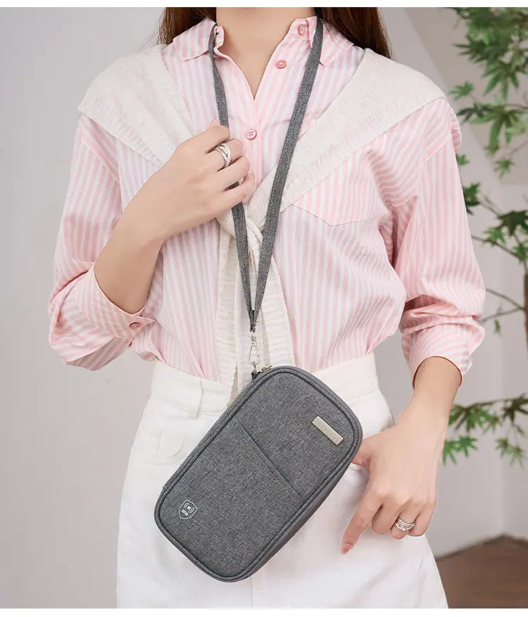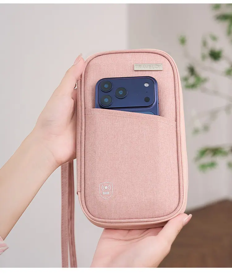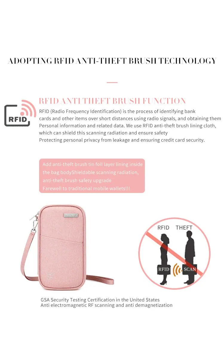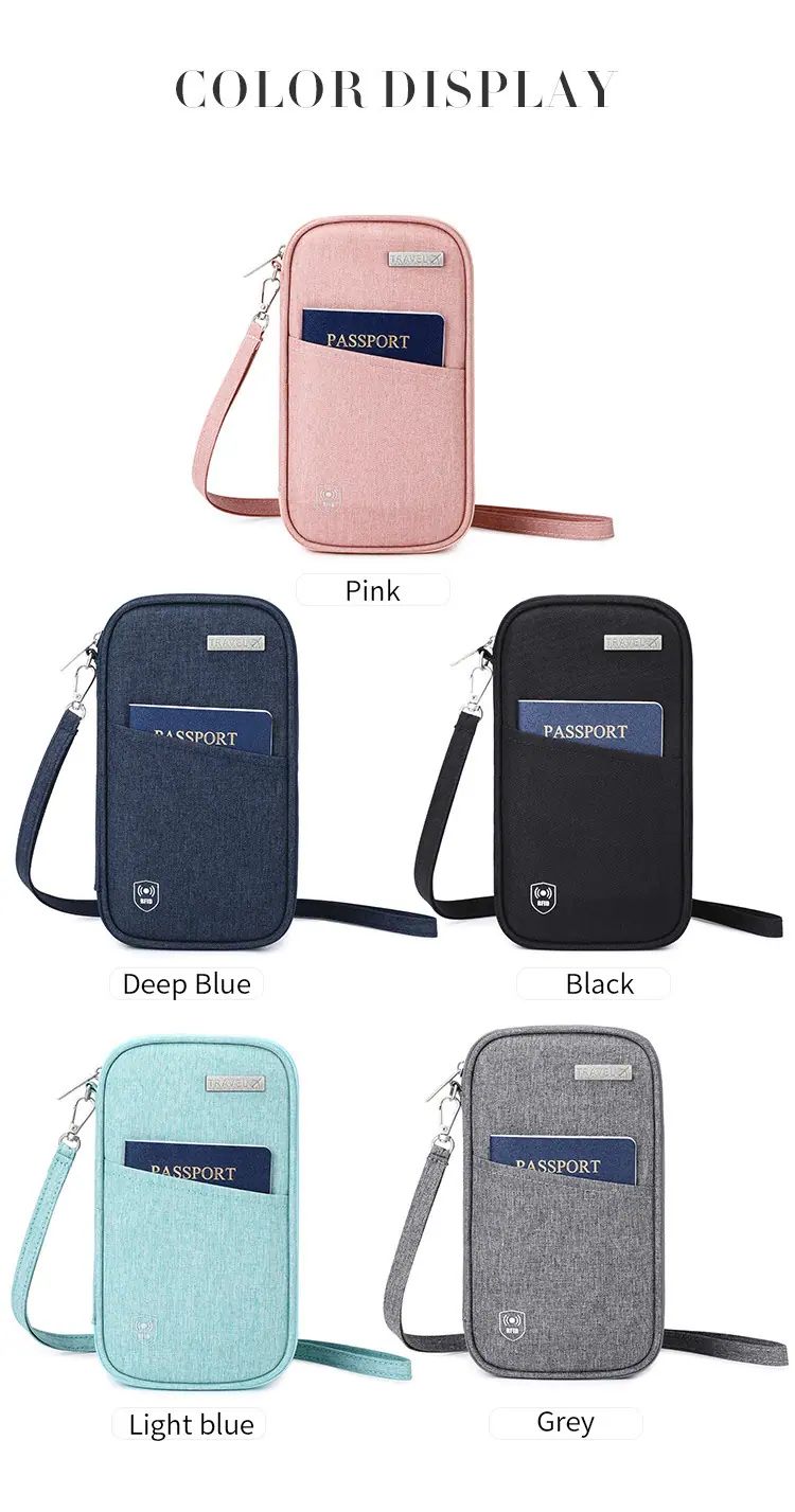 Nuevo Porta Pasaporte Colgante de Cuello Transfronterizo Billetera Antimagnética RFID para Hombre y Mujer Impermeable Clip para Pasaporte Bolsa de Almacenamiento para Viaje