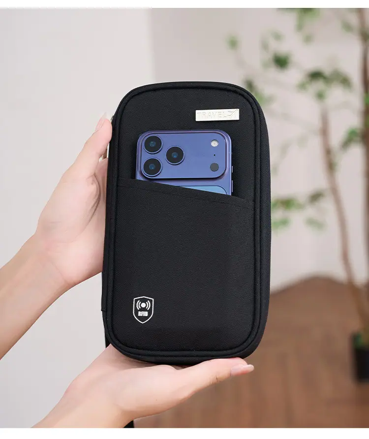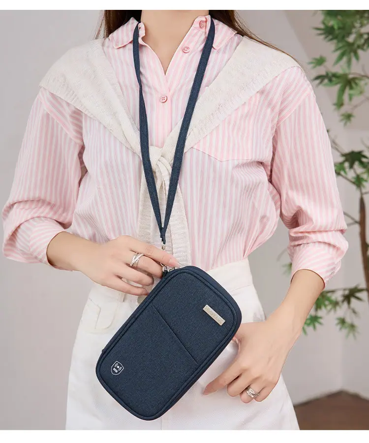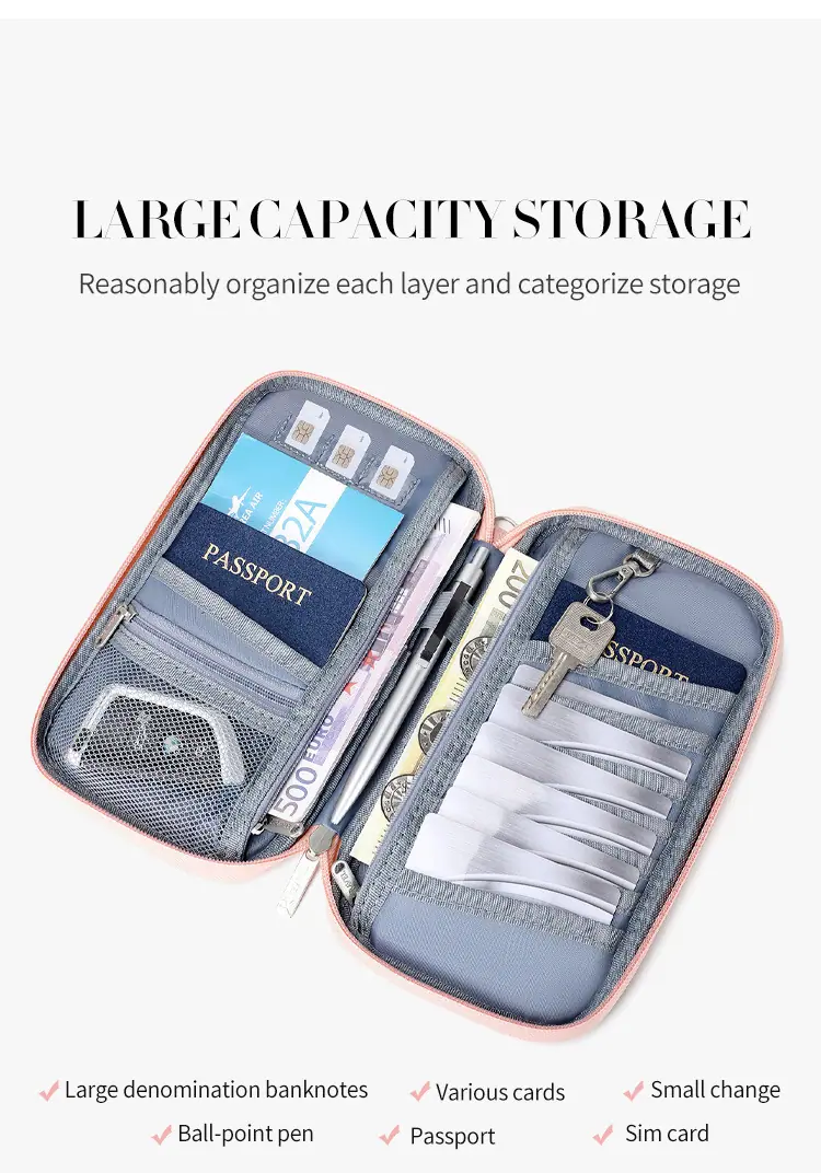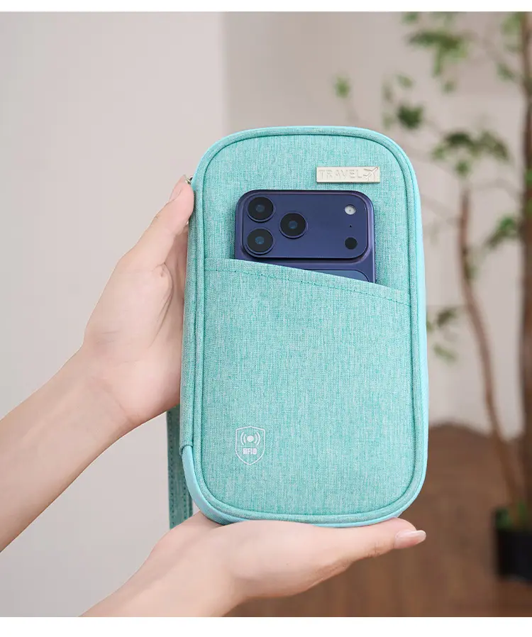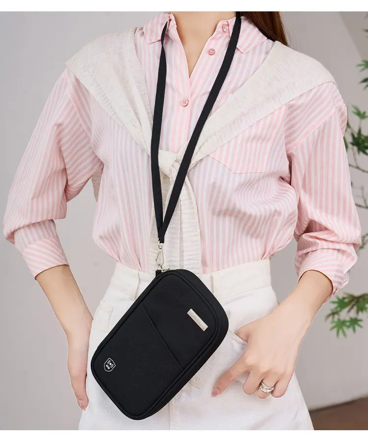 Nuevo Porta Pasaporte Colgante de Cuello Transfronterizo Billetera Antimagnética RFID para Hombre y Mujer Impermeable Clip para Pasaporte Bolsa de Almacenamiento para Viaje