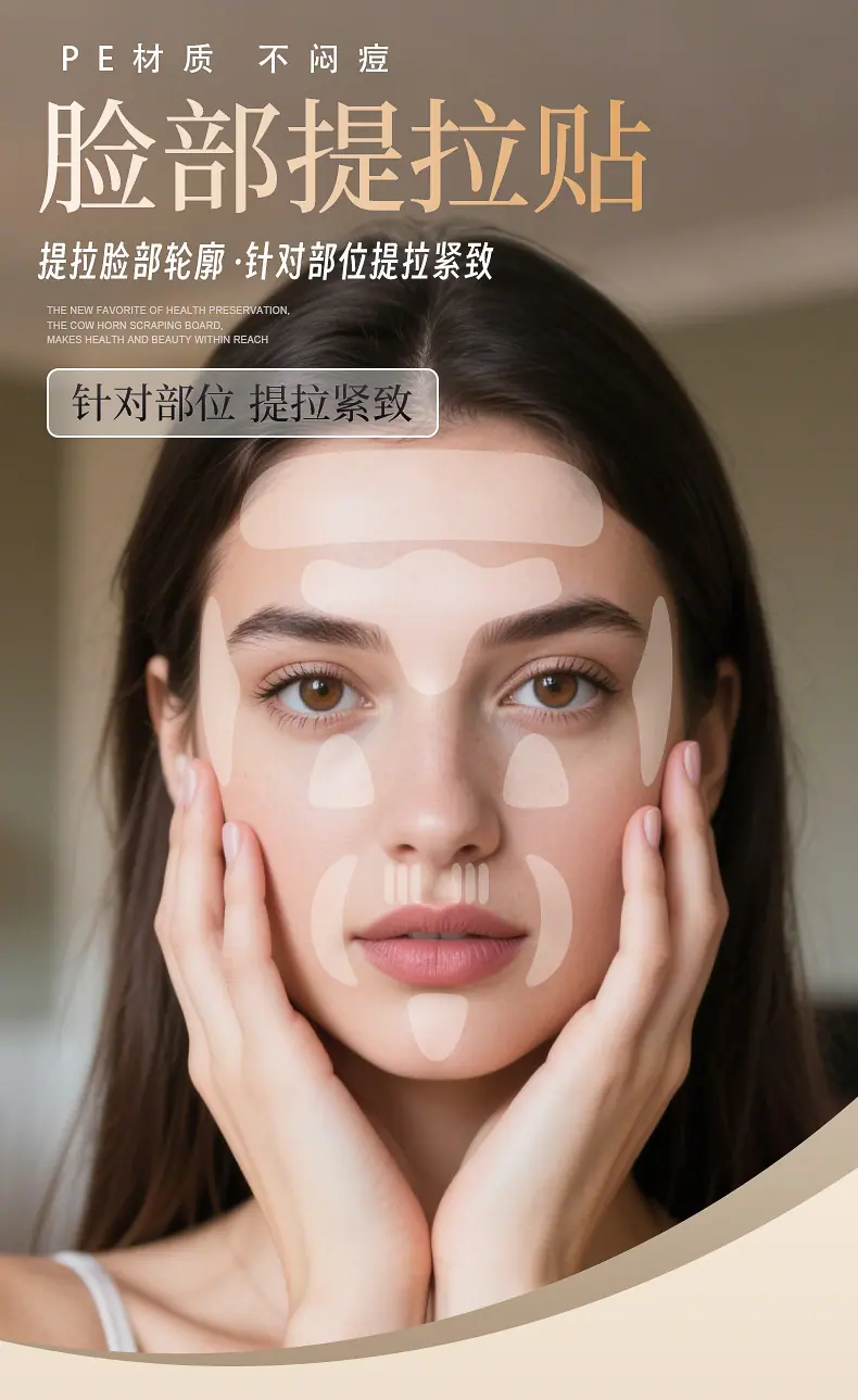Parche V para Lifting Facial Transfronterizo, Parche de Barbilla Semitransparente, Parche Facial Reafirmante Pe, Parche Desechable para la Comisura de la Boca y el Surco Nasolabial
