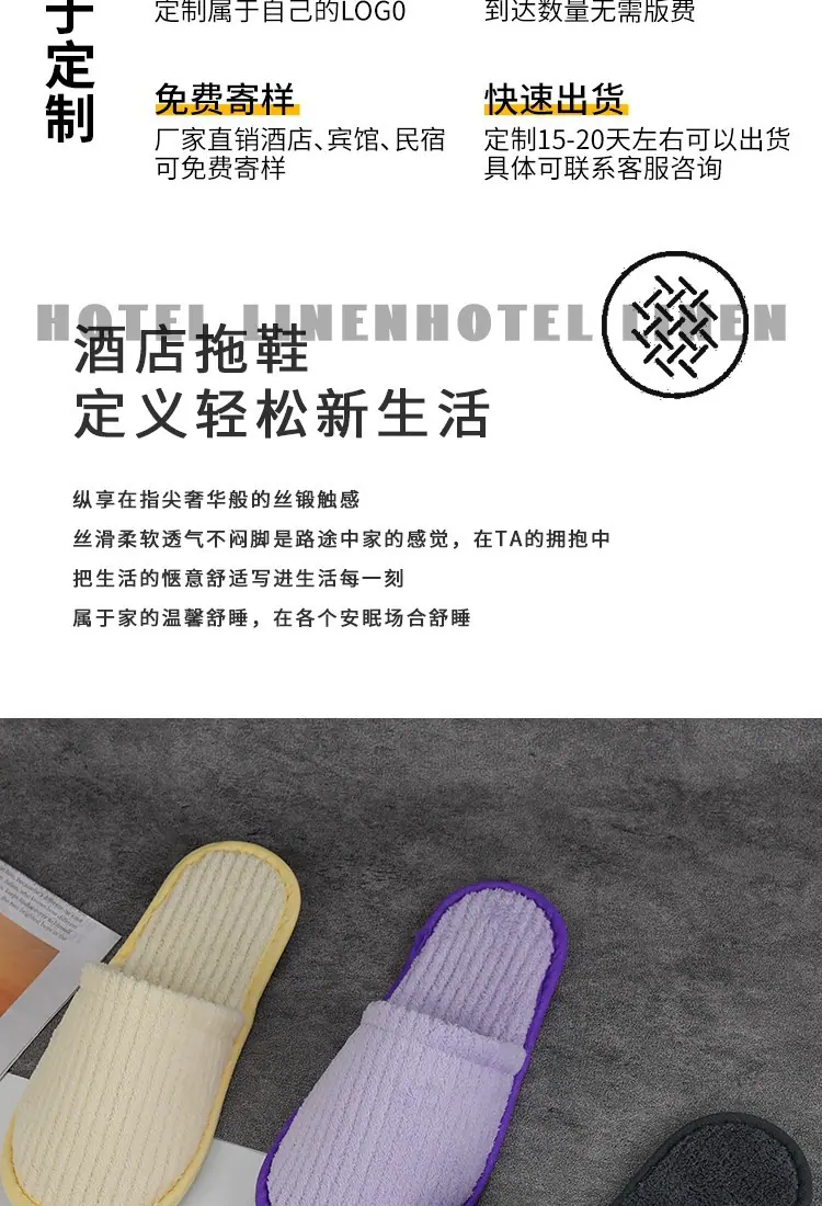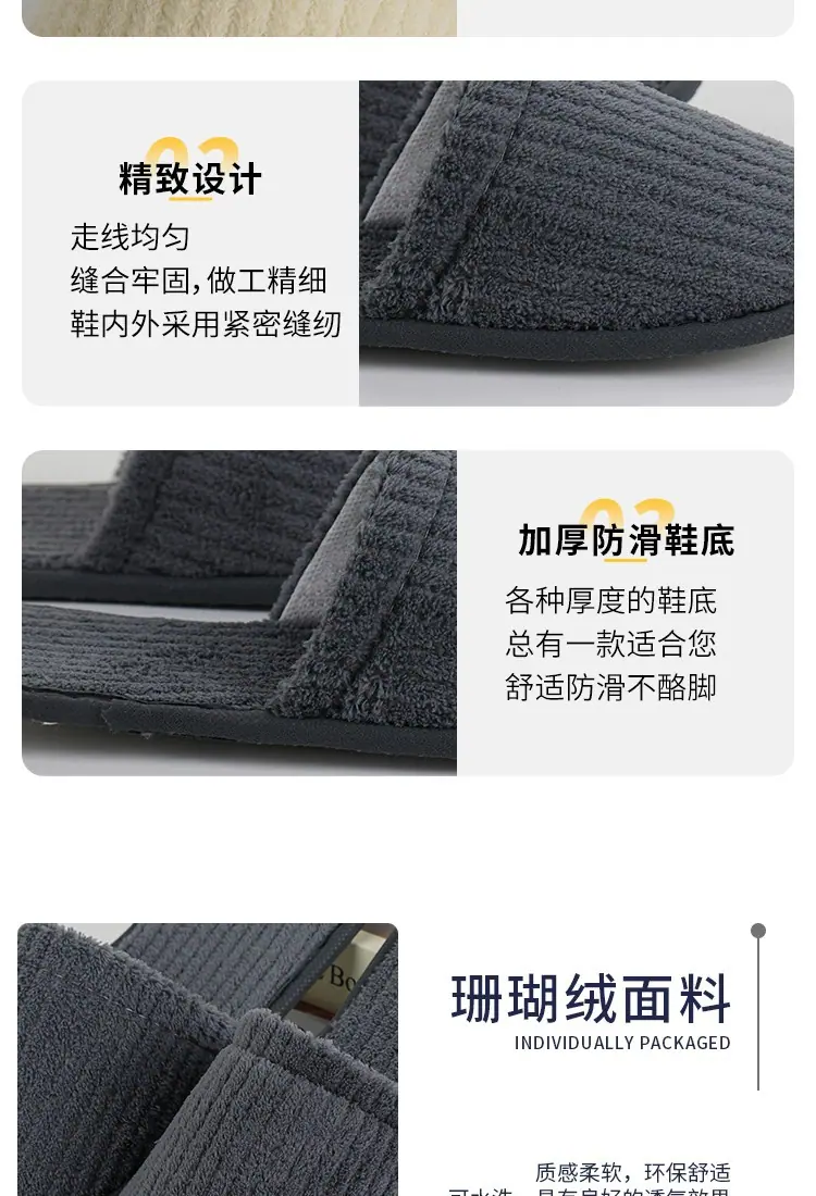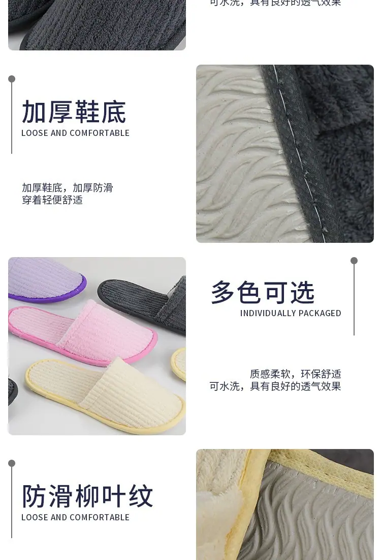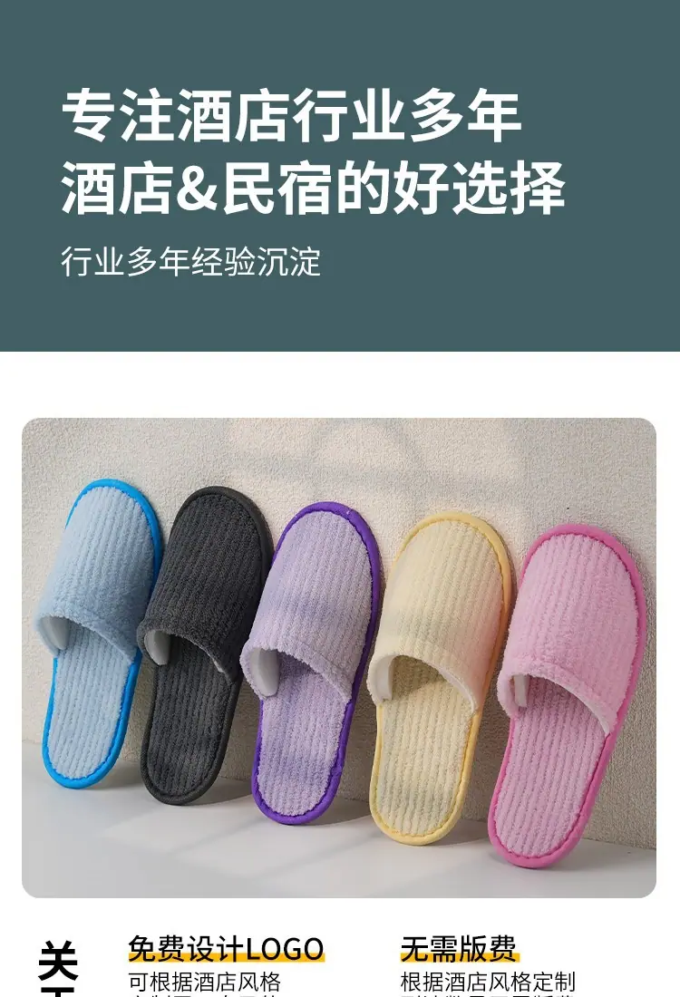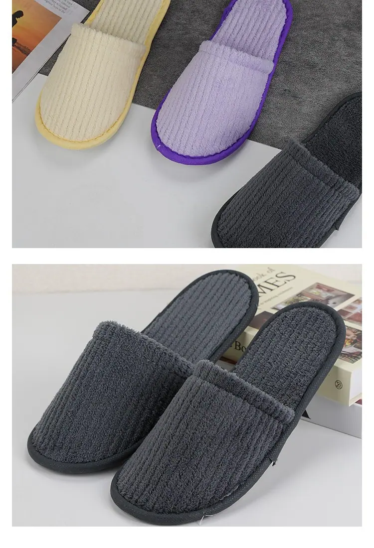 Pantuflas Desechables de Terciopelo Coral a Rayas para Hoteles, B&B, Salones de Belleza, Hospitalidad Interior para el Hogar, Gruesas al por Mayor
