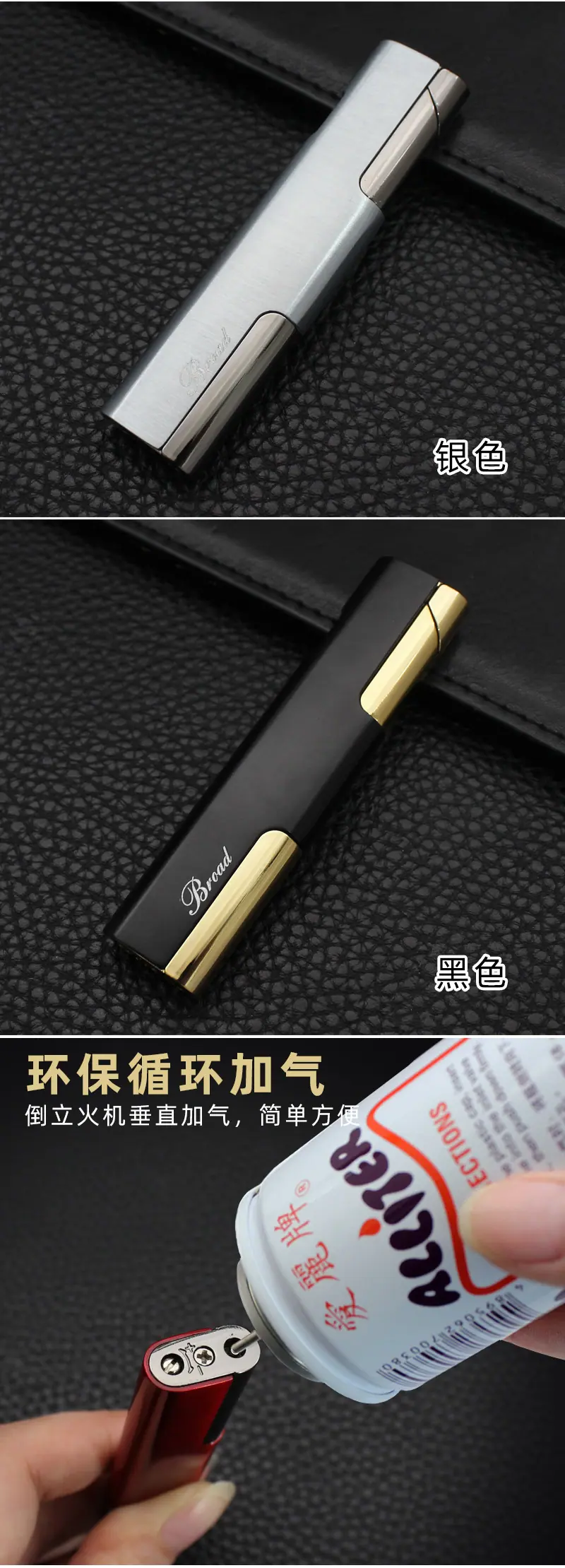 (3) Al rellenar un modelo normal, por favor, coloque el encendedor boca abajo, alinee la salida de la botella de gas con la entrada del encendedor y cúbrala, presione con fuerza varias veces y mantenga presionado durante unos 2 segundos cada vez; si el gas no se puede rellenar, puede haber exceso de aire en la caja de gas. En este momento, puede desinflarla, use un destornillador pequeño para alinear la entrada de aire y desínflela rápidamente 1-2 veces, y luego rellénela;