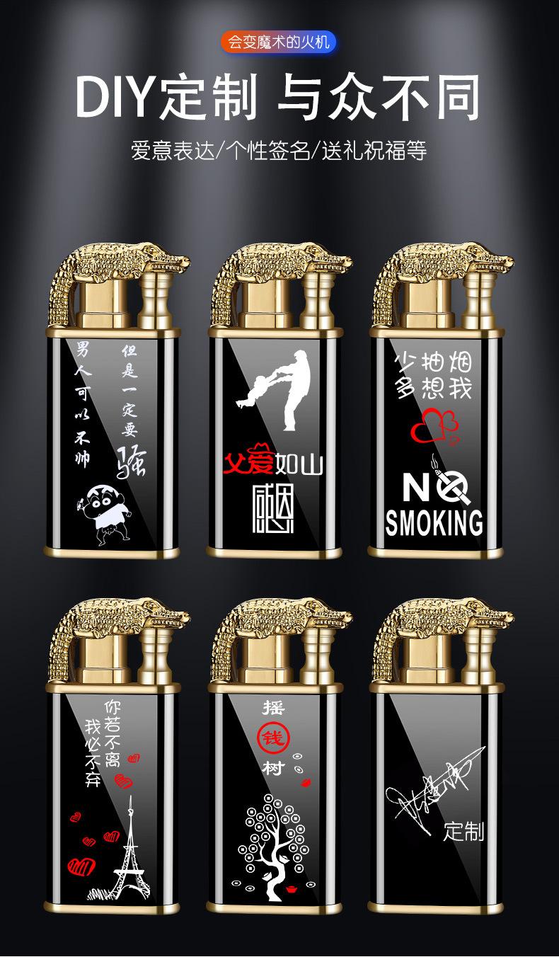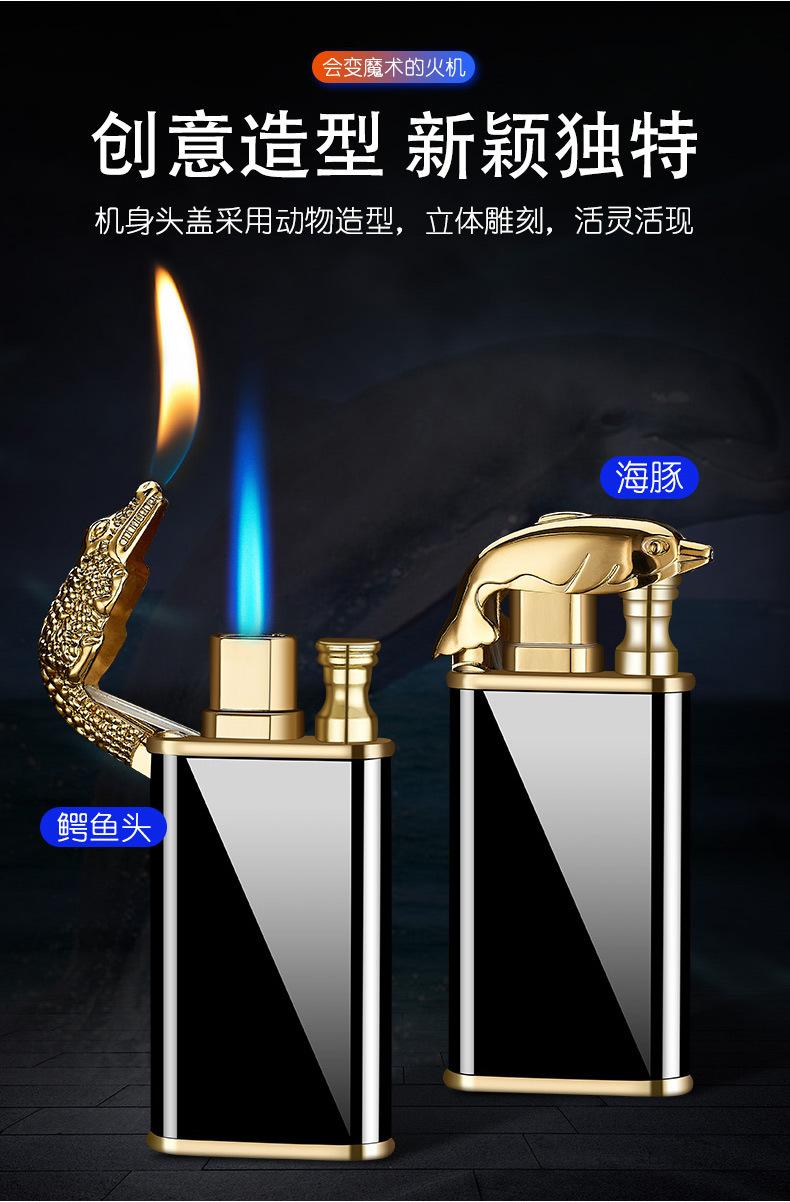 HB872 Encendedor Creativo de Doble Llama de Cocodrilo Encendedor de Doble Uso de Fuego Directo a Fuego Abierto A Prueba de Viento Inflable Letras