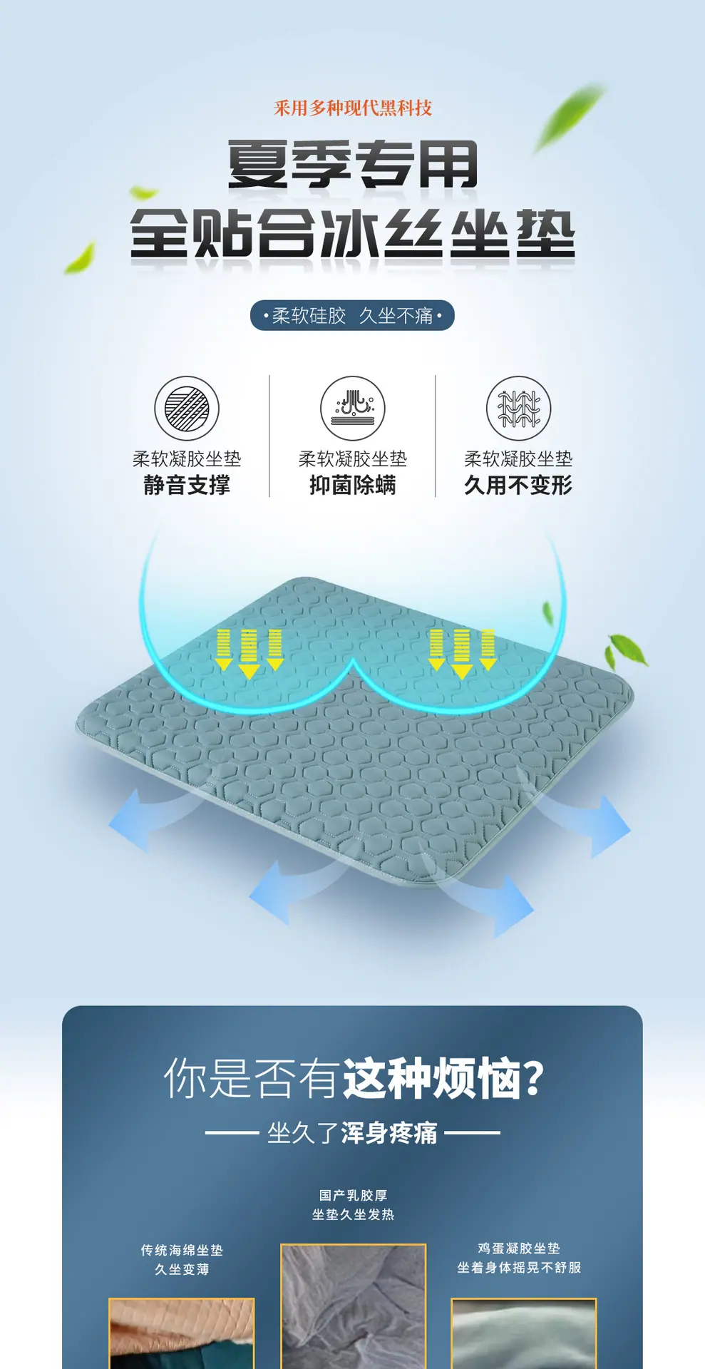 Cojín de seda de hielo de verano alfombrilla de hielo antideslizante cojín de gel cojín de oficina cojín para coche 2023 nuevo