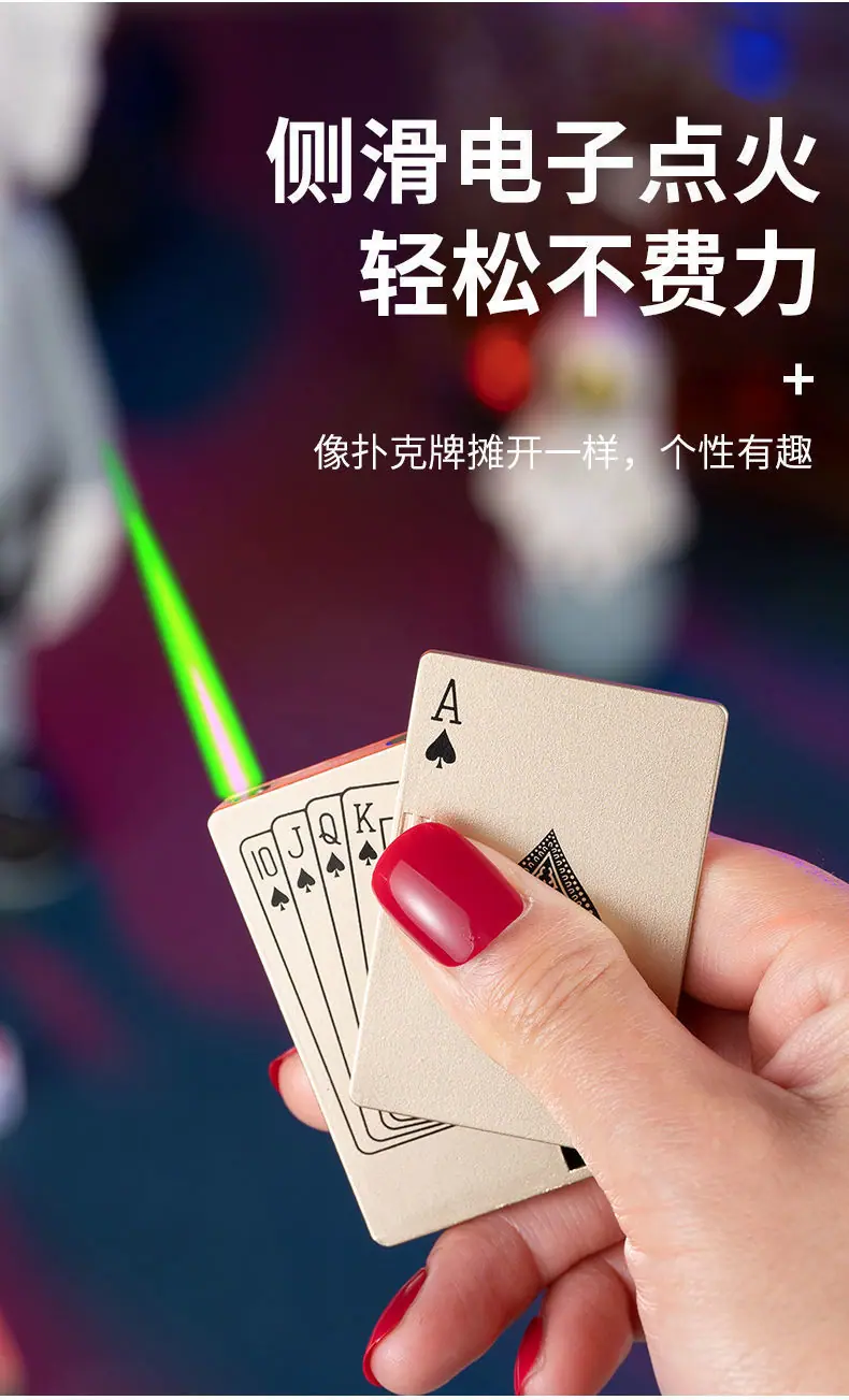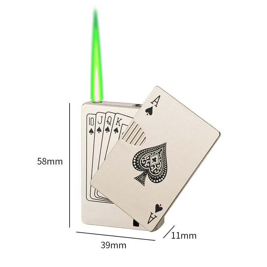 Encendedor inflable de alta gama Shake Tone para cartas de póker, resistente al viento, color verde fuego, para chequear billetes.