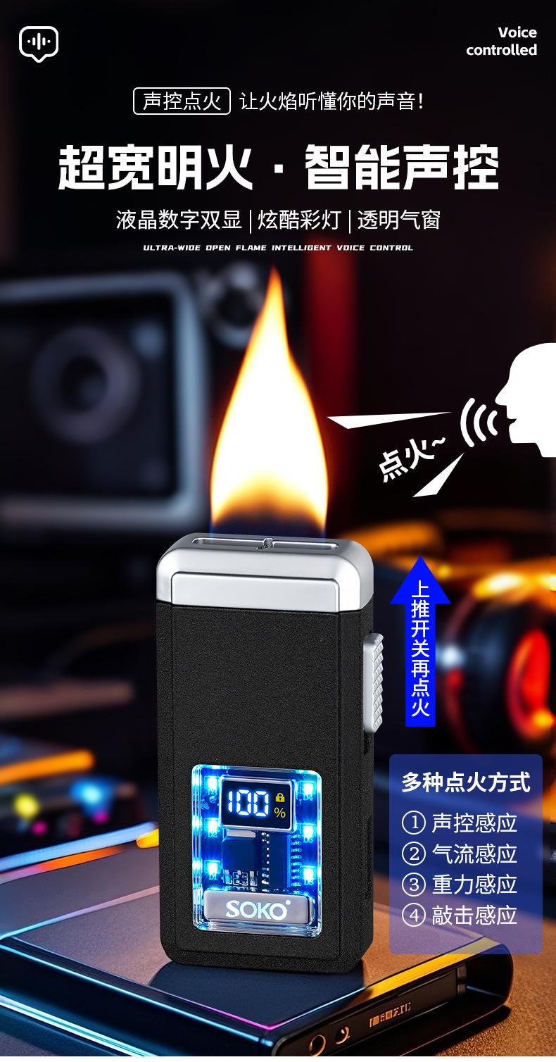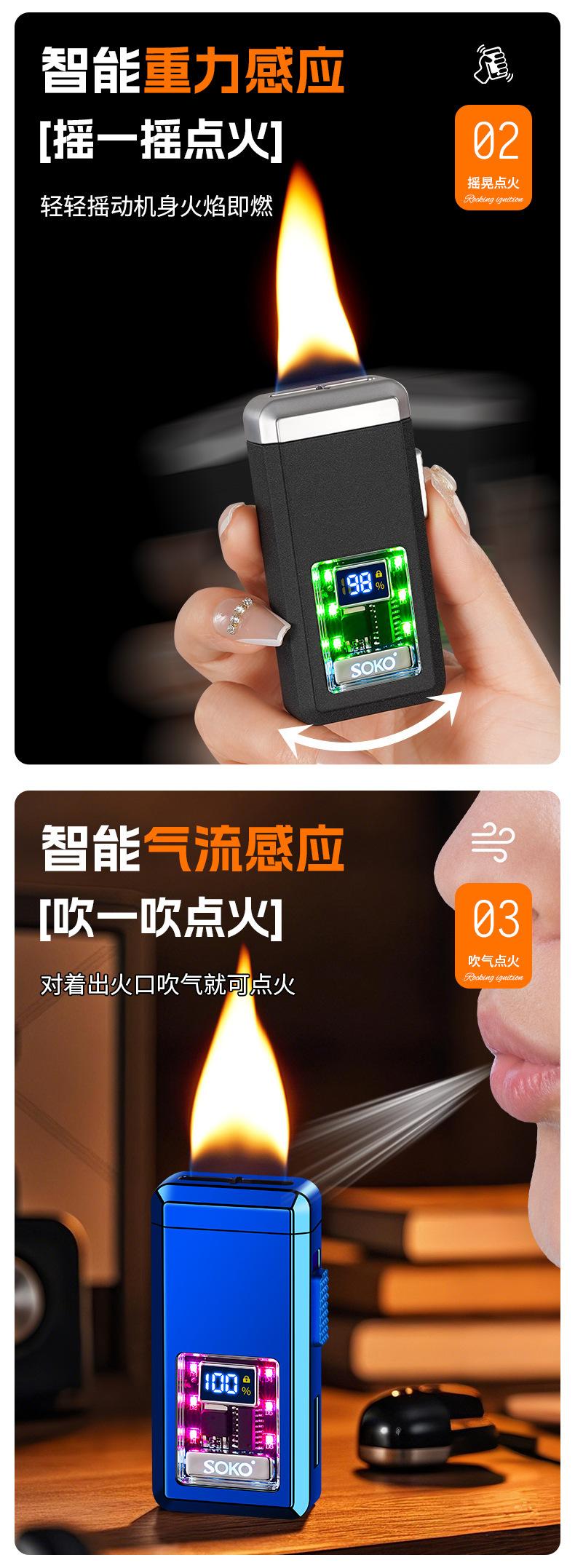Encendedor de llama abierta por inducción moderno, encendedor de cigarrillos recargable, encendedor de encendido por inducción de agitación por gravedad, transfronterizo