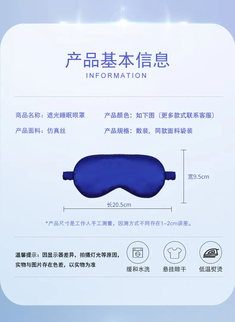 Antifaz de Ojos de Seda Imitación de Doble Cara para Dormir, Sombreado, Banda Elástica, Suministros para Antifaz para el Hogar, Listo para la Venta