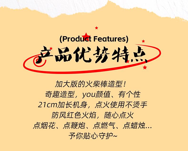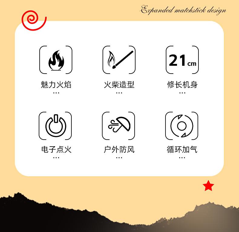 Douyin Celebridad de Internet Encendedor Creativo de Cerilla a Prueba de Viento Inflable Versión Extendida Llama Roja Encendedor de Cocina Portátil