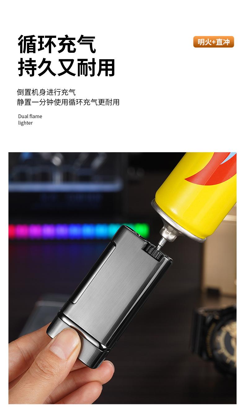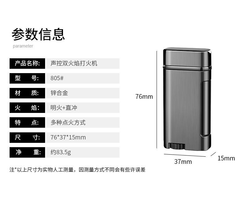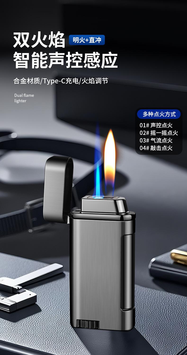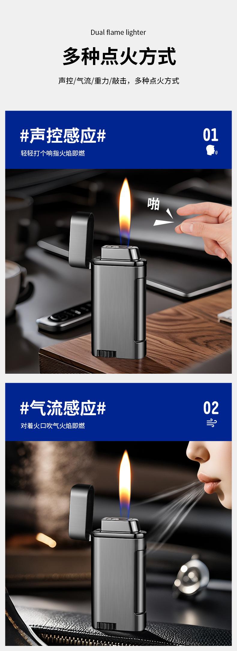 Encendedor Creativo de Tecnología Negra Controlado por Voz Inflable Doble Fuego Llama Abierta Llama Azul Encendedor Personalizable Logotipo Publicitario
