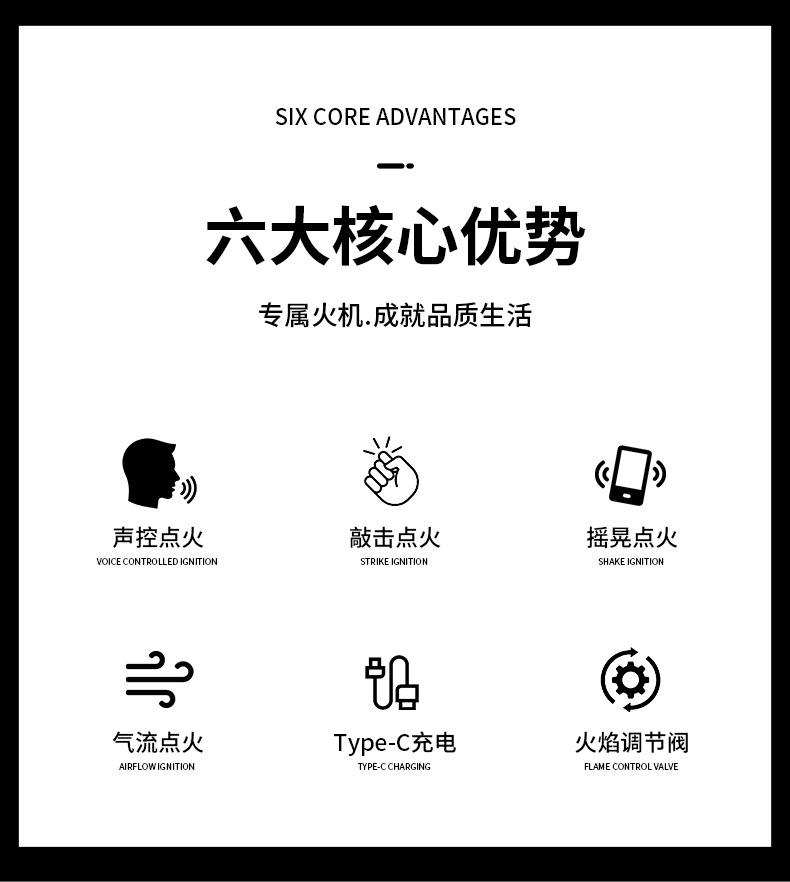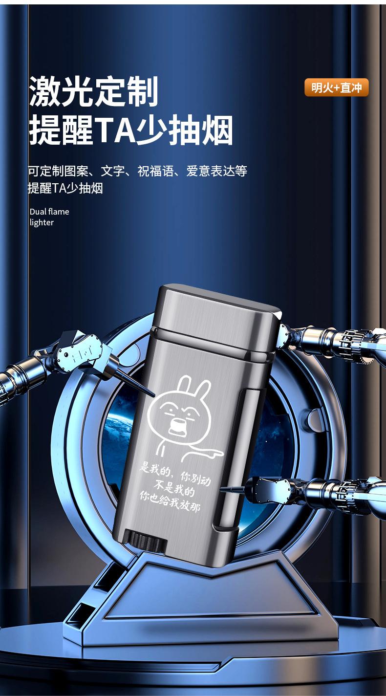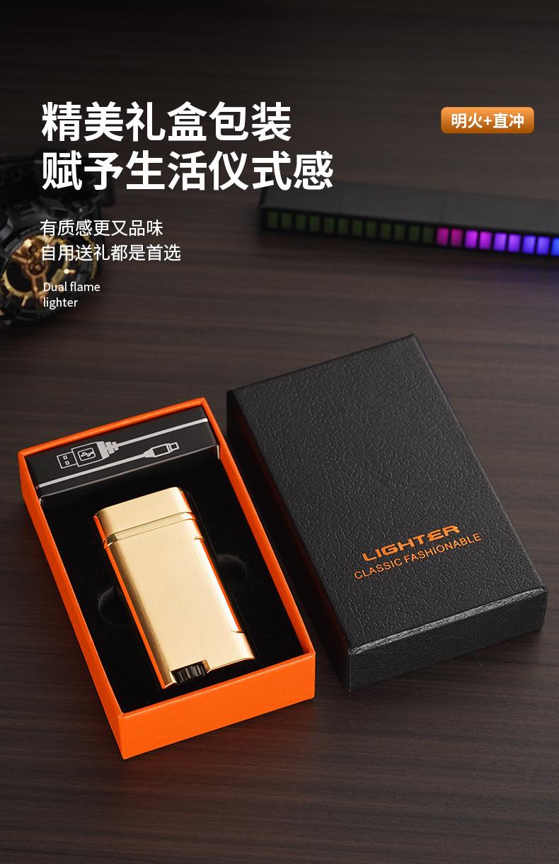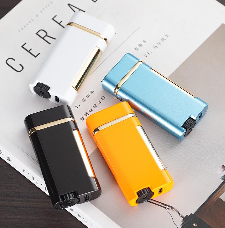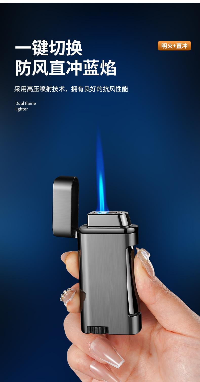 Encendedor Creativo de Tecnología Negra Controlado por Voz Inflable Doble Fuego Llama Abierta Llama Azul Encendedor Personalizable Logotipo Publicitario