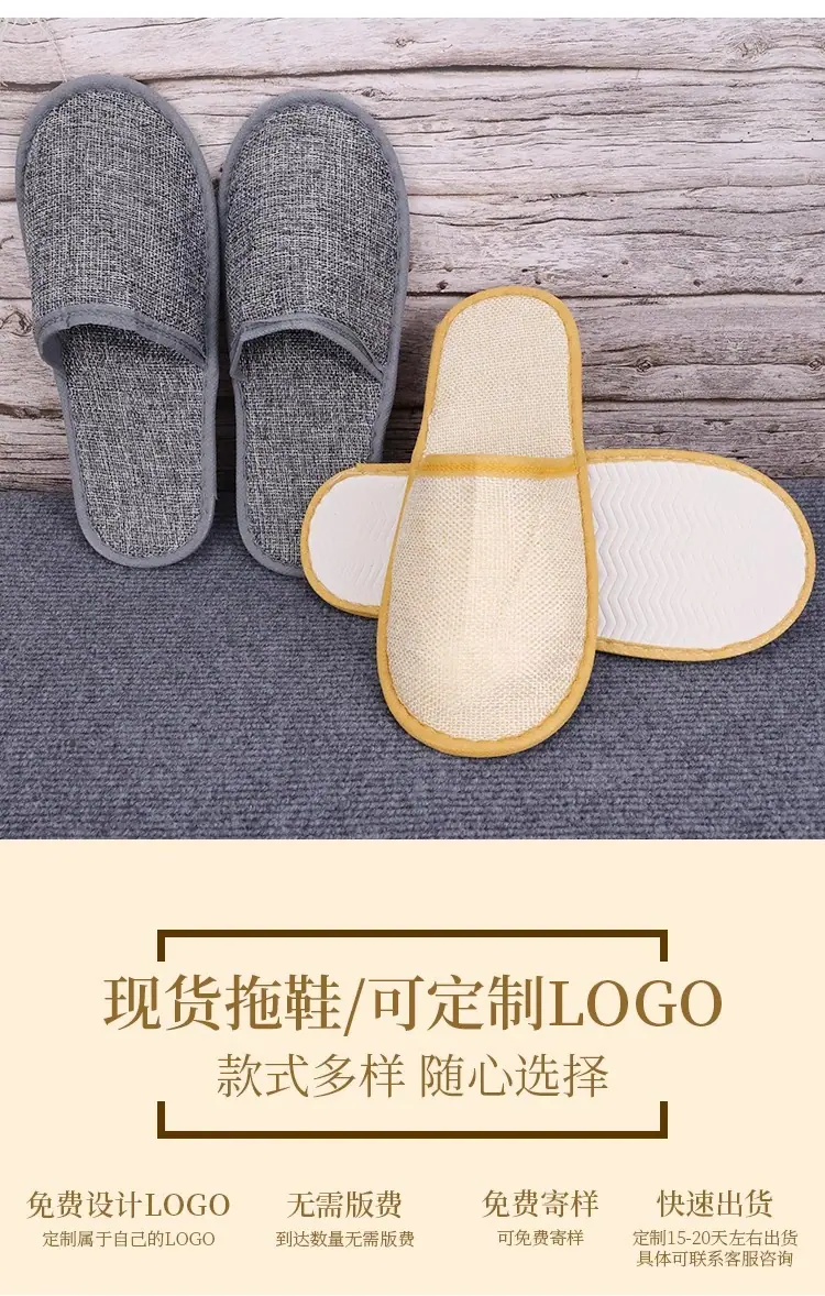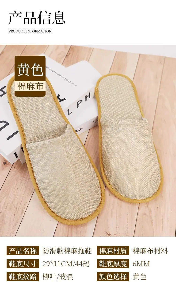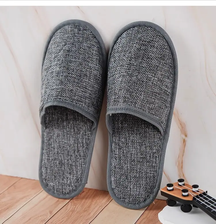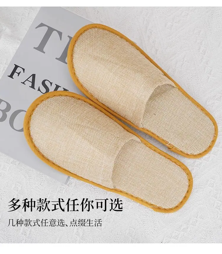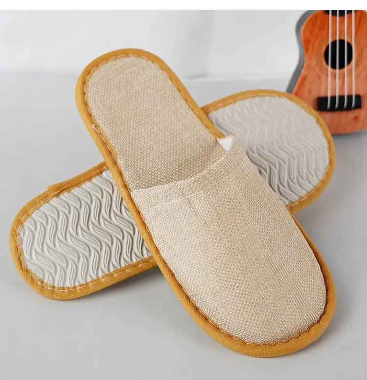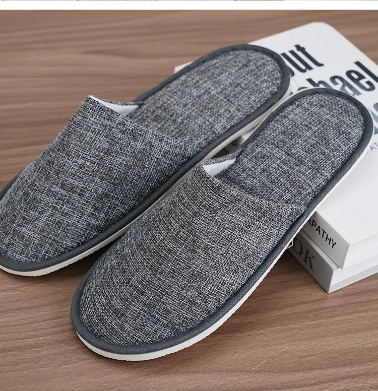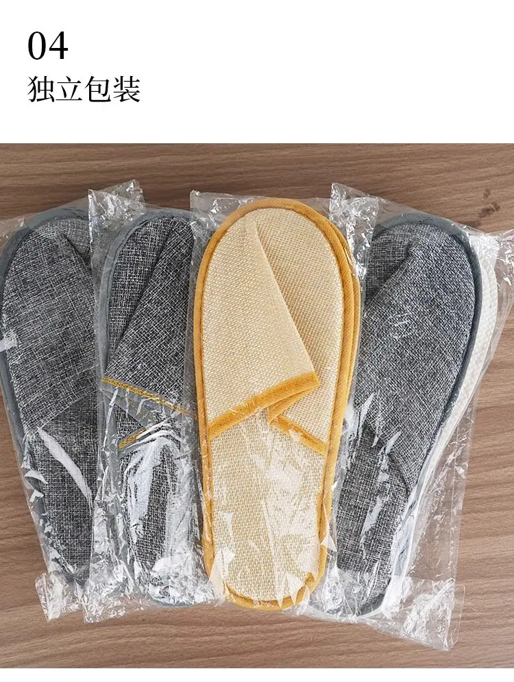 Pantuflas desechables de hotel de alta gama lino engrosado antideslizante para el hogar hospitalidad salón de belleza pantuflas suministros de hotel al por mayor