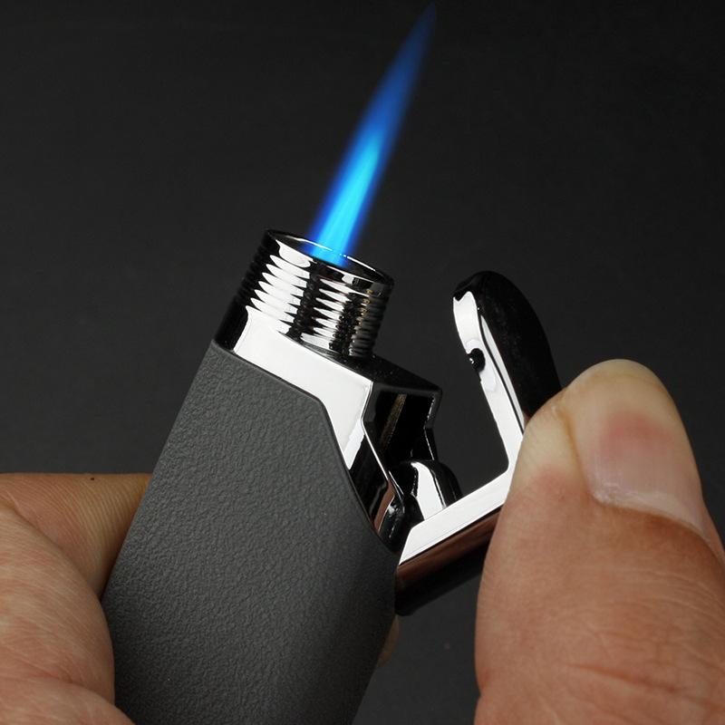 Encendedor inflable BD418 a prueba de viento con llama azul, para exteriores, de metal, con personalidad creativa, para hombre.