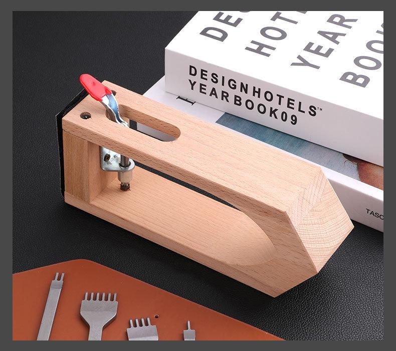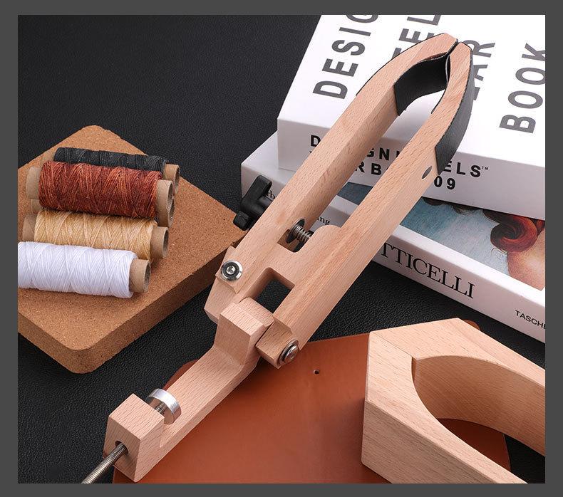 Herramientas de Artesanía en Cuero Hechas a Mano Madera de Haya Costura a Mano Pegado de Cuero Abrazadera de Madera Cuero DIY Set de Bolsas de Cuero Punzón Diamante Materiales de Hilo Encerado