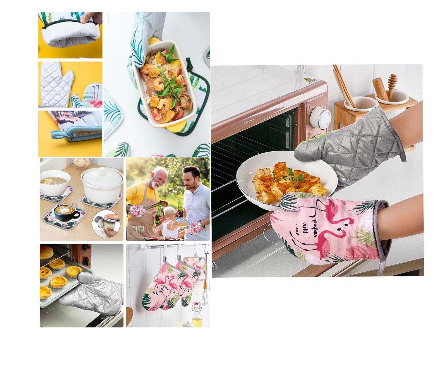 Guantes de Horno Microondas Aislantes de Calor Juego de Dos Piezas Engrosado Almohadillas Manoplas de Horno Guantes de Cocina para Hornear Patrones Personalizados