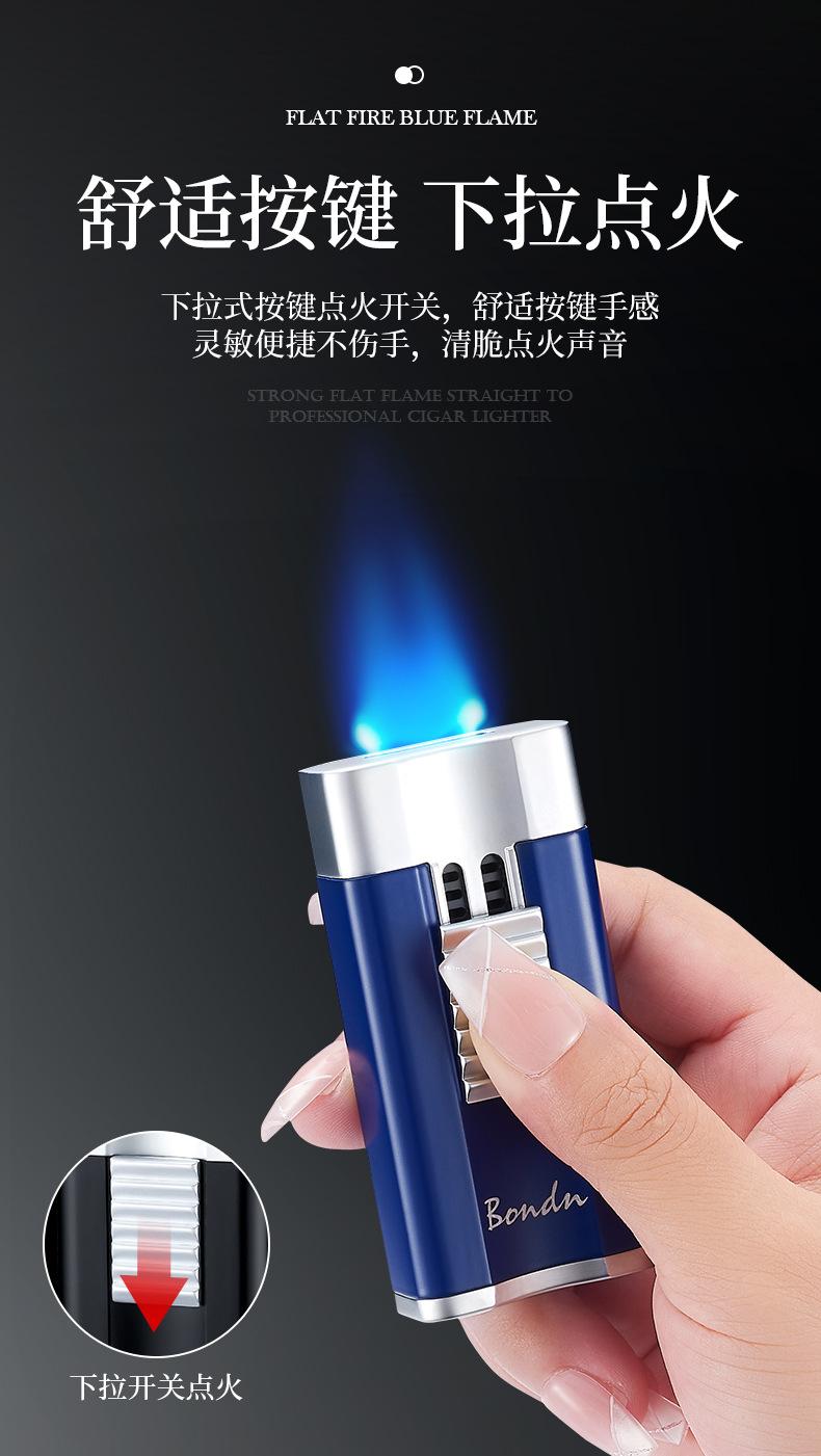 Encendedor Inflable de Llama Azul Plana de Moda a Prueba de Viento Llama Directa Llama Feroz Encendedor de Cigarros para Hombre de Alta Gama Regalo Venta al por Mayor
