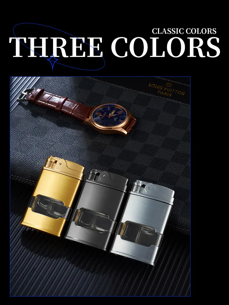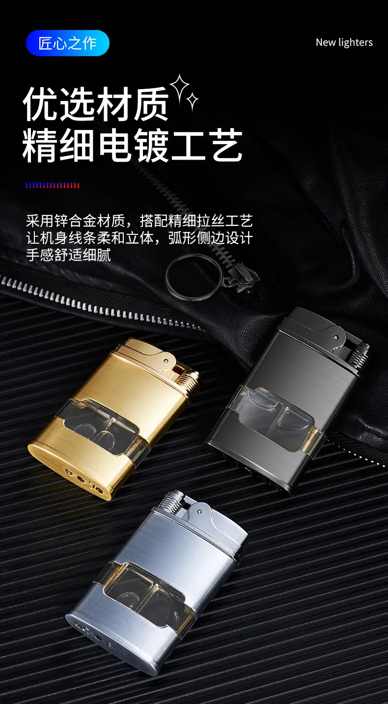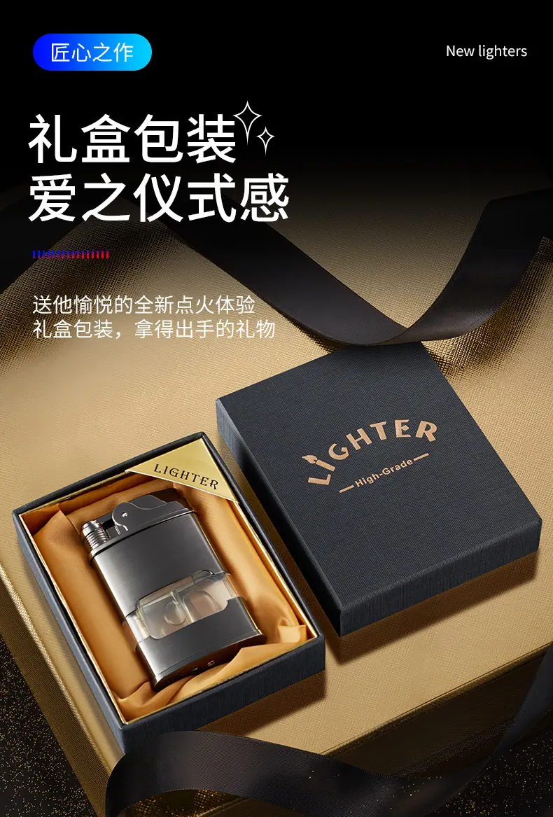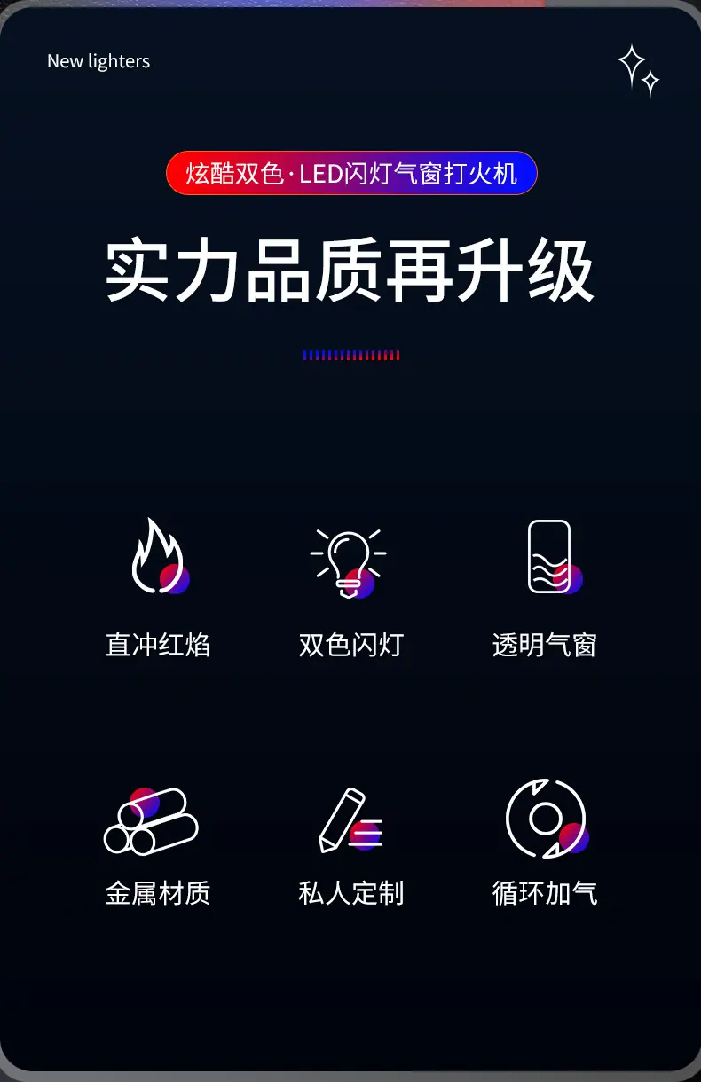 Luz roja y azul intermitente transparente almacén de gas inflable a prueba de viento encendedor de llama roja metal de alta gama personalidad transfronterizo caliente al por mayor