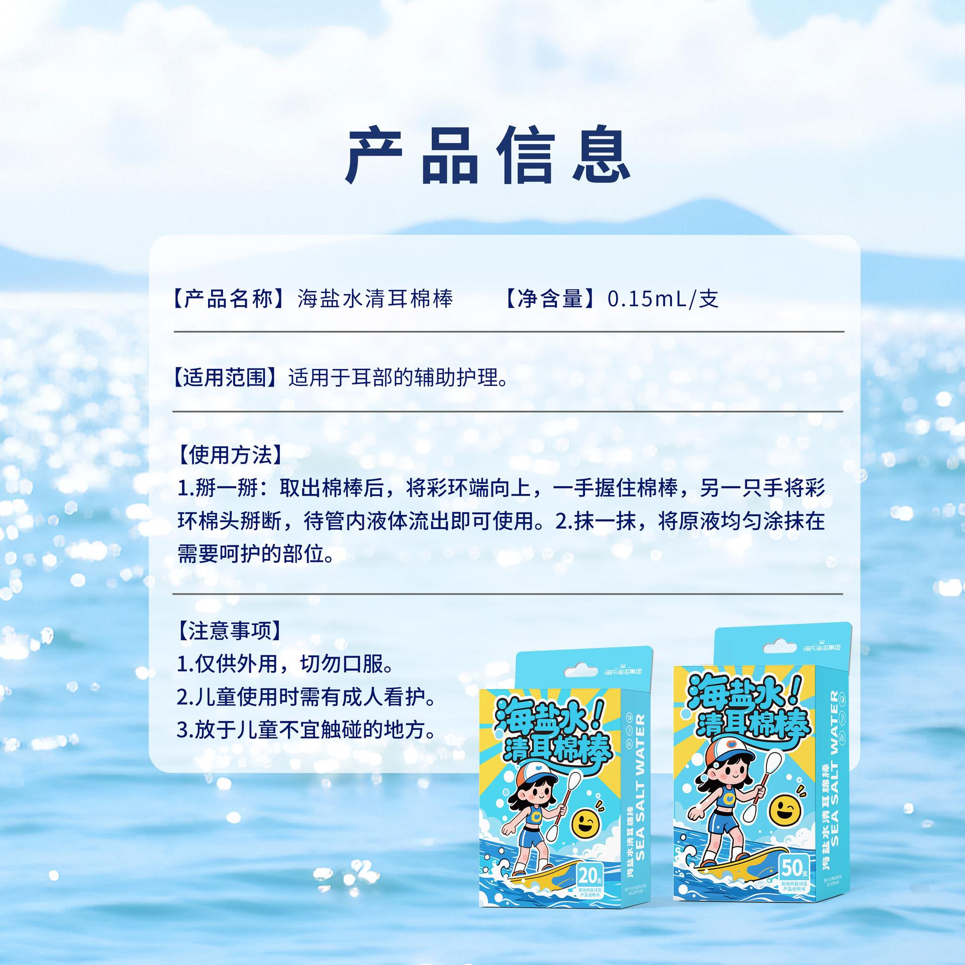 Besvick Sea Salt Water Ear Cleaning Cotton Swabs 0.15ml/piece. 20 pieces/box-----1 box, Besvway Sea Salt Wate...