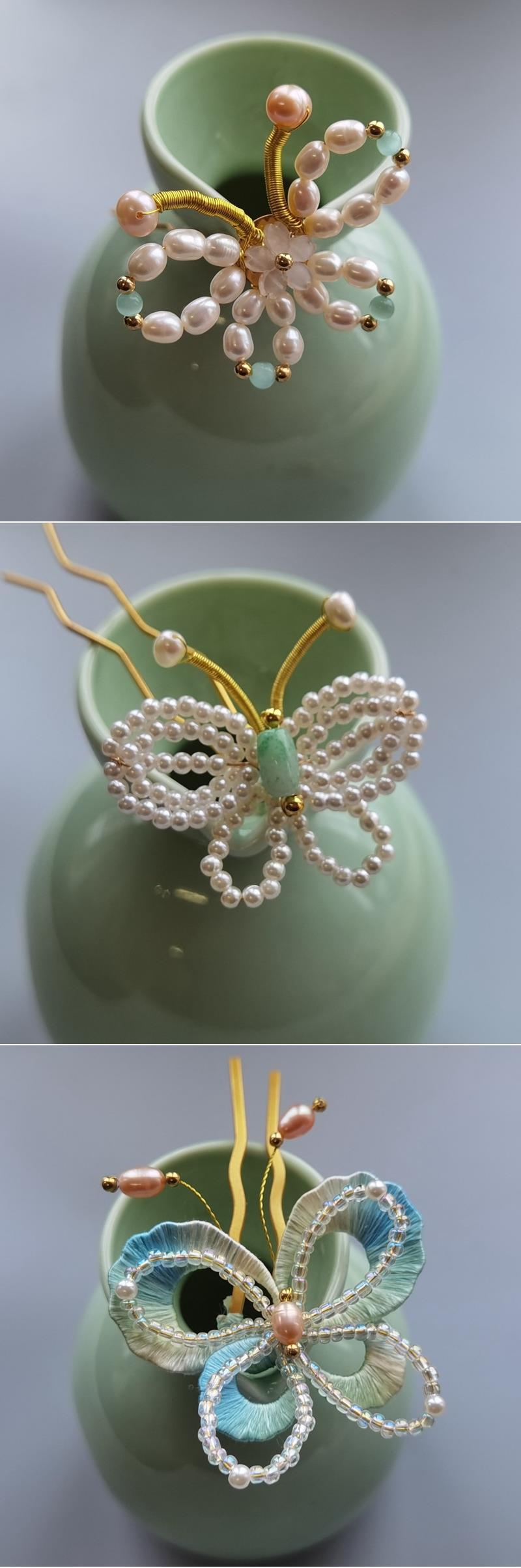 Accesorios para el cabello de filigrana retro Perla Mariposa Horquilla Joyería Estilo Antiguo Tocado Hanfu Horquilla Pinza para el cabello
