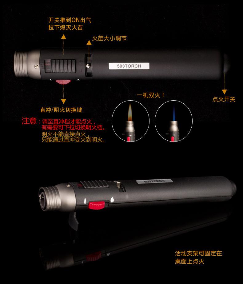 Encendedor Baicheng 503 doble llama perforación directa a prueba de viento encendedor creativo personalidad pluma encendedor pistola de soldar soplete set para fumar transfronterizo