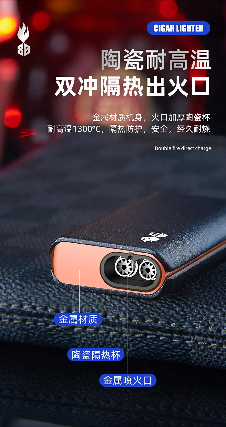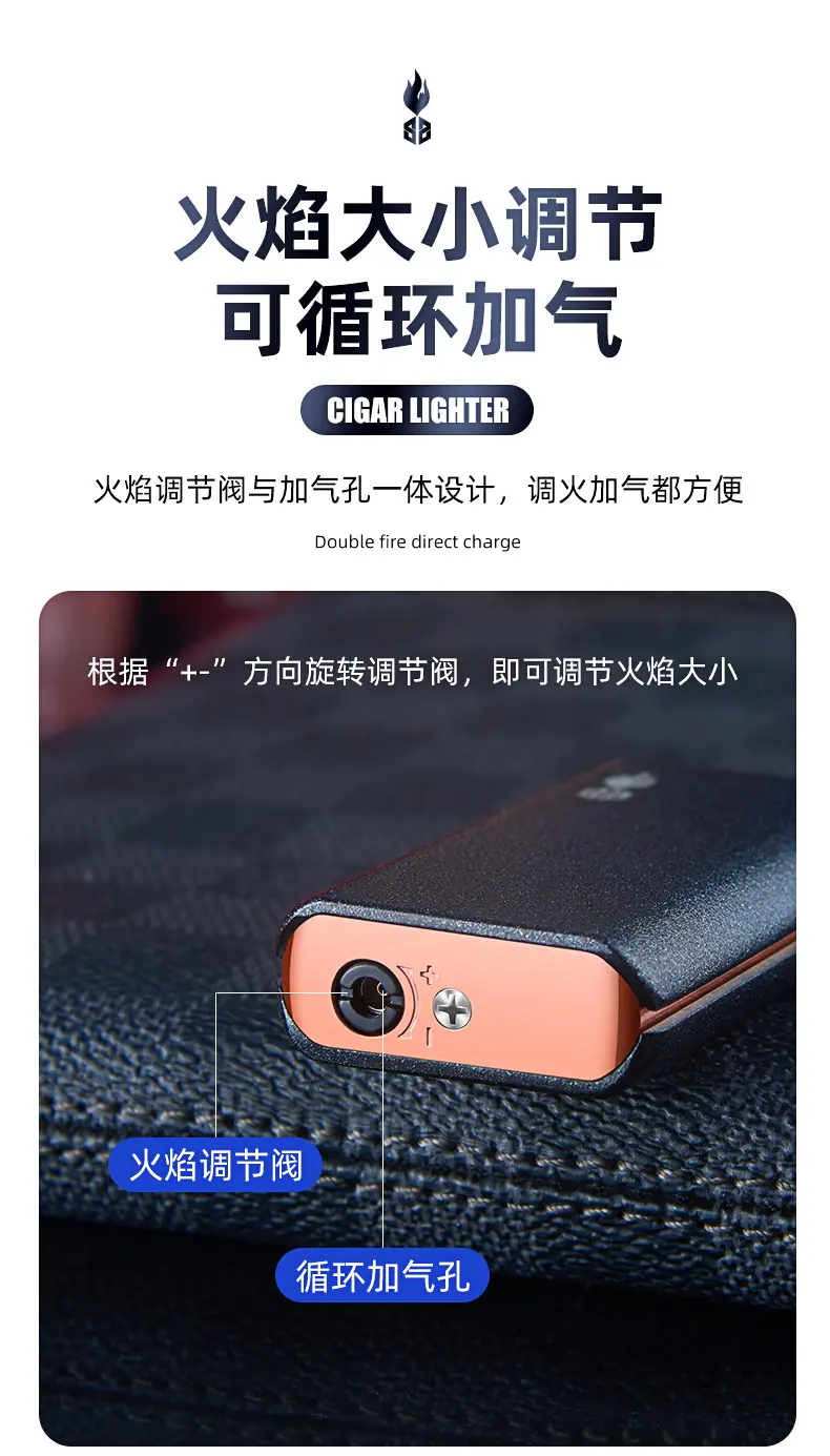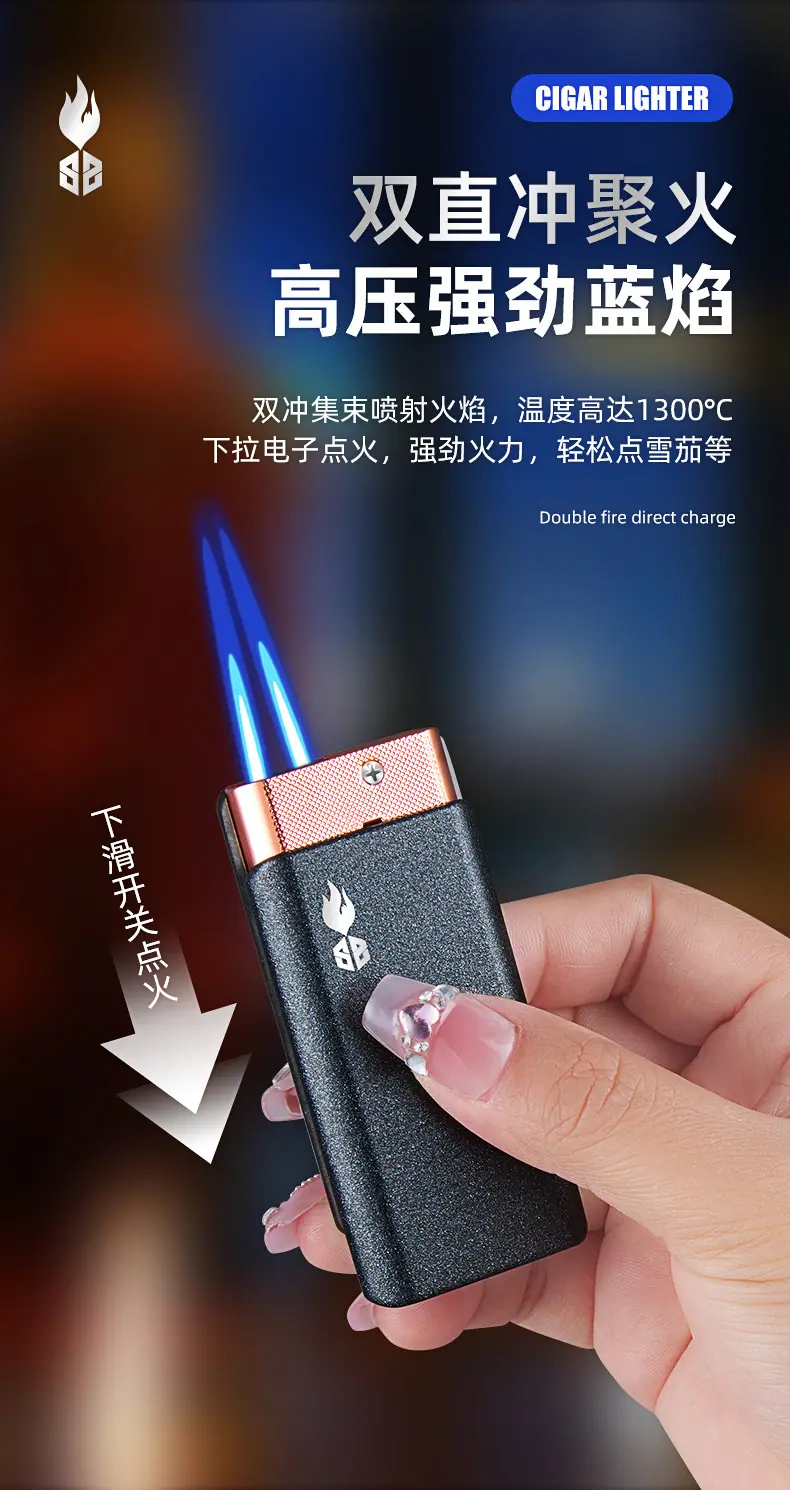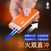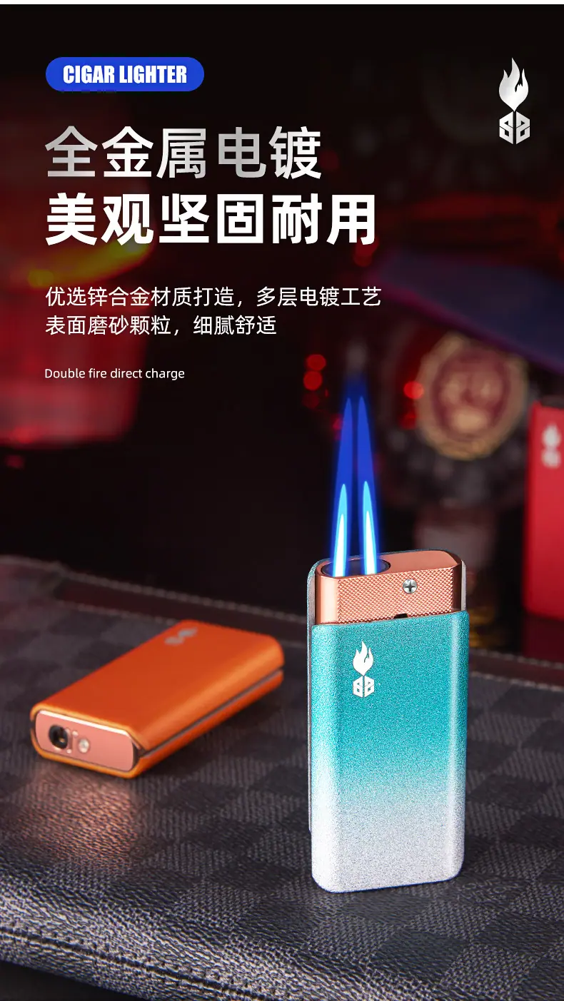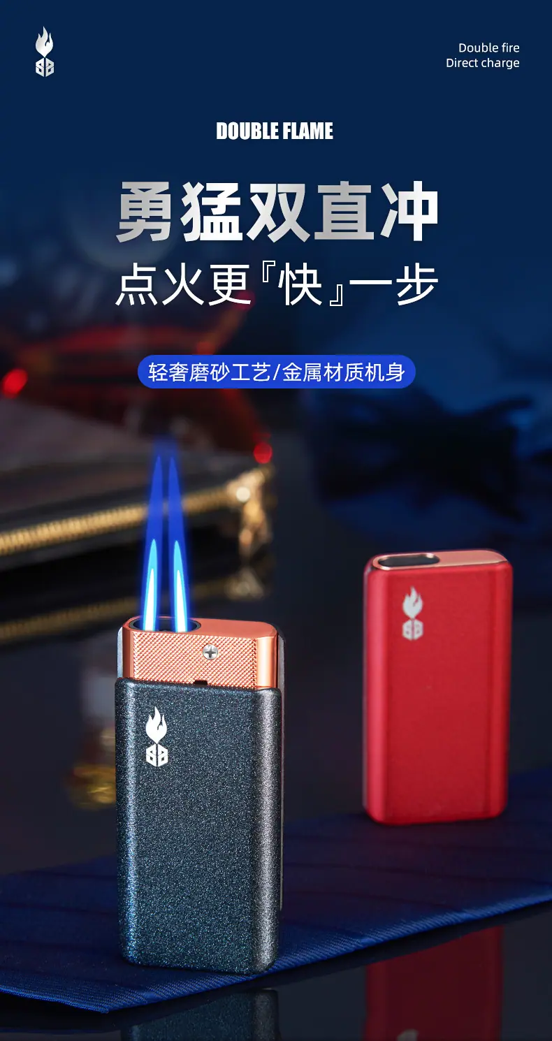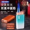 Nuevo encendedor inflable de llama azul fuerte de alta presión de doble encendido directo, cuerpo de aleación, encendedor de regalo publicitario transfronterizo