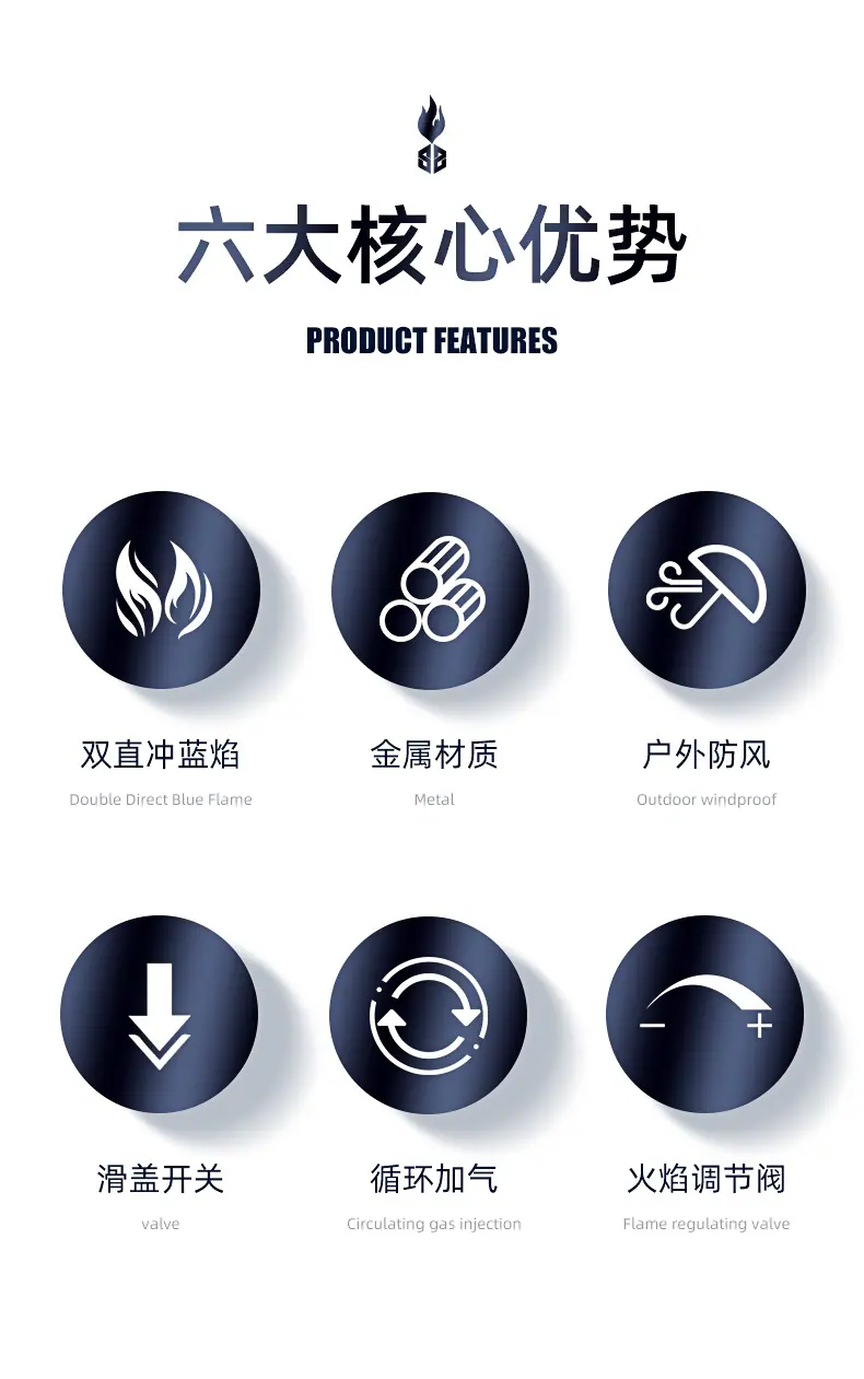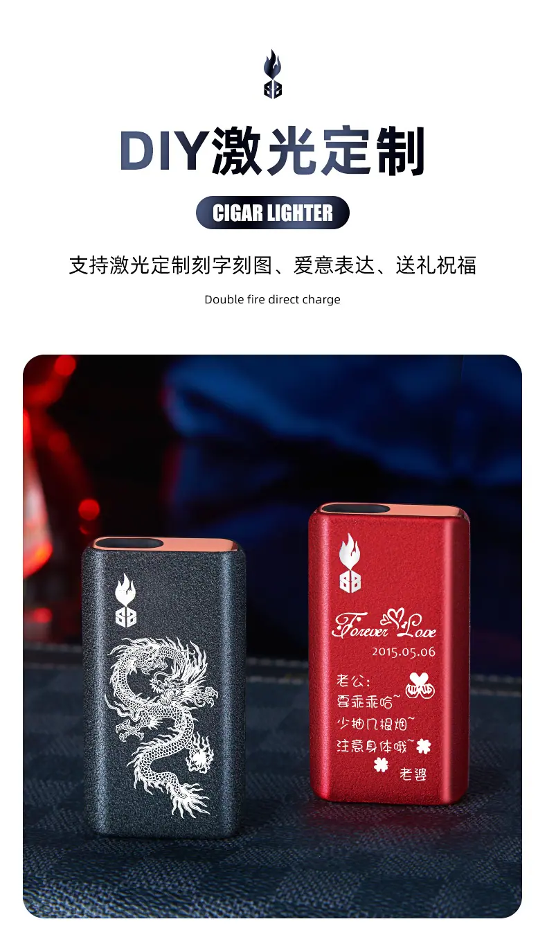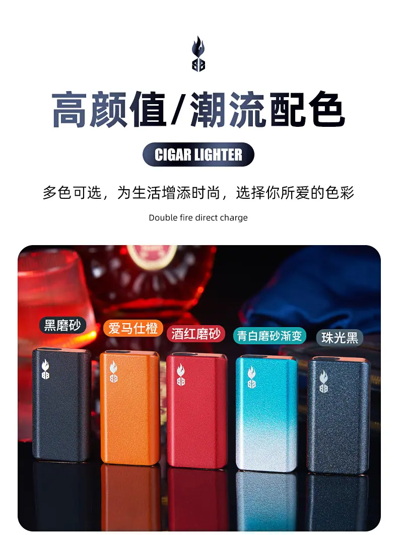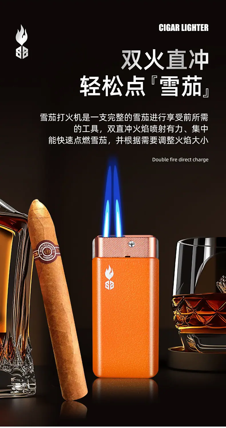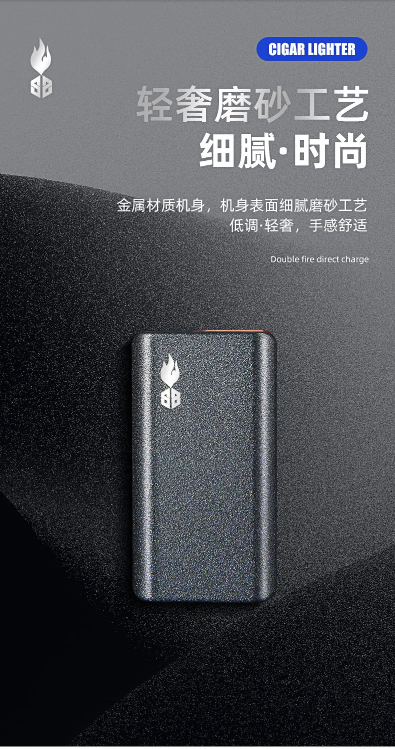 Nuevo encendedor inflable de llama azul fuerte de alta presión de doble encendido directo, cuerpo de aleación, encendedor de regalo publicitario transfronterizo