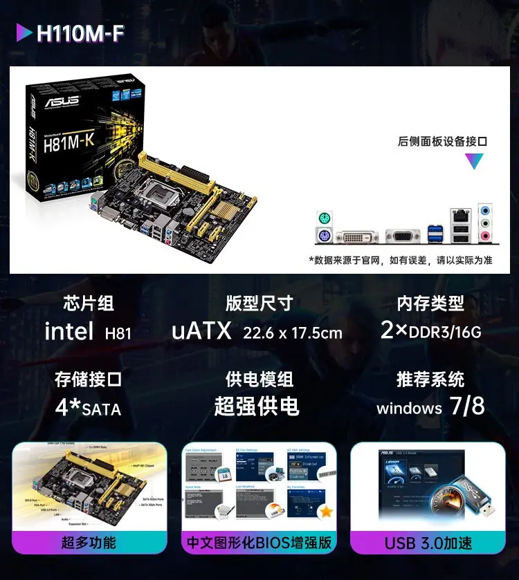 Adecuado para Placa Base de Computadora de Escritorio Asus H110M-F Ddr4 H81M-K Ddr3