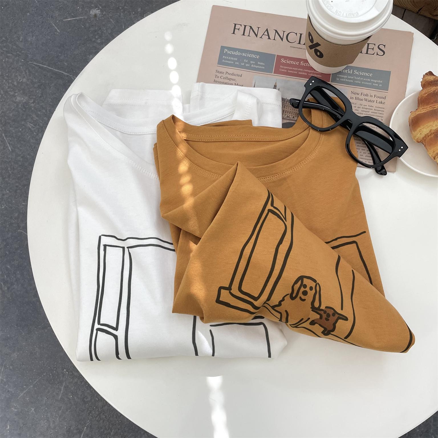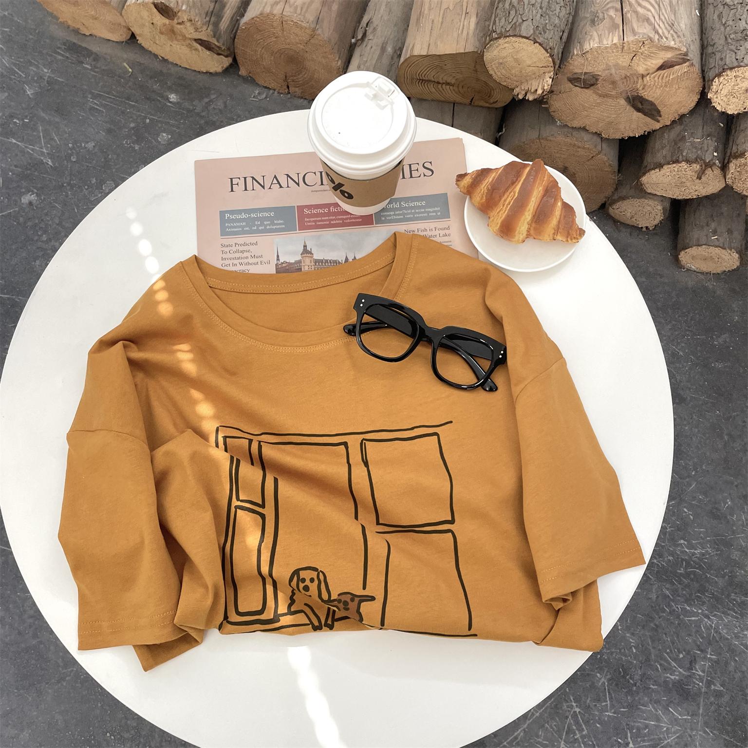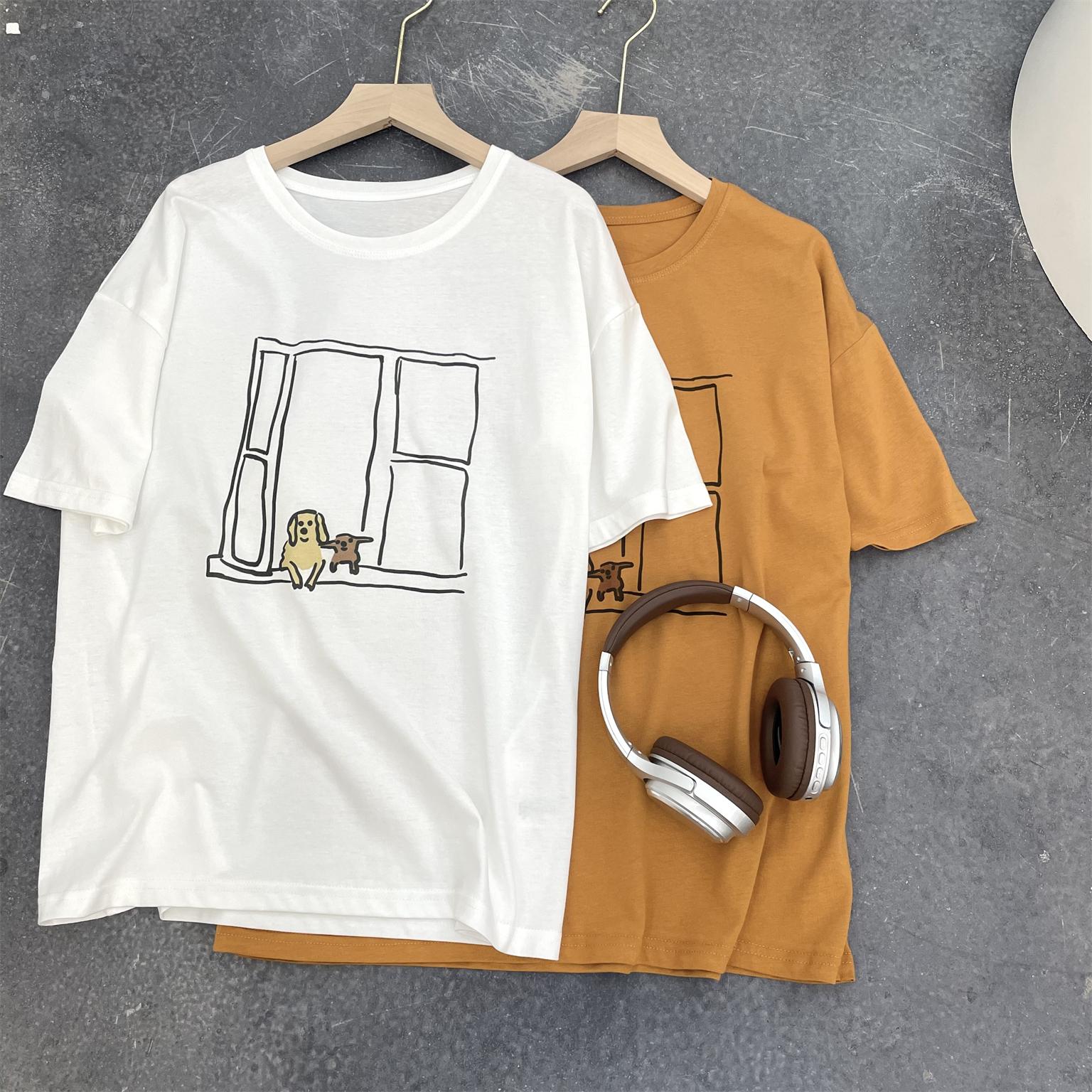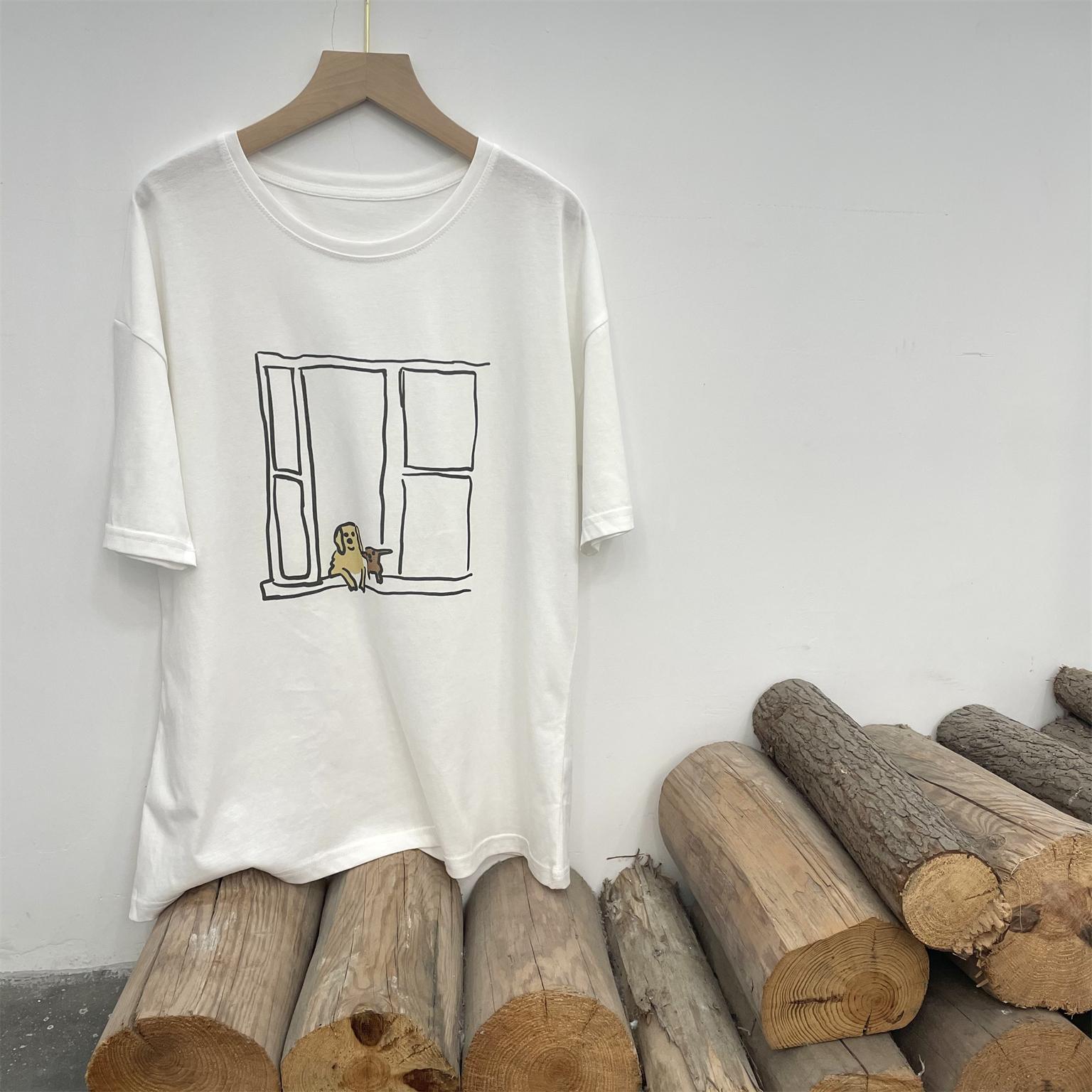 Playera de Manga Corta con Estampado de Estilo Urbano para Mujer Primavera y Verano Nueva Moda Look Holgado Adelgazante Algodón Puro Top de Cuello Redondo