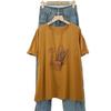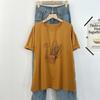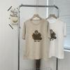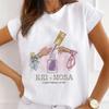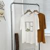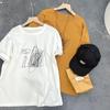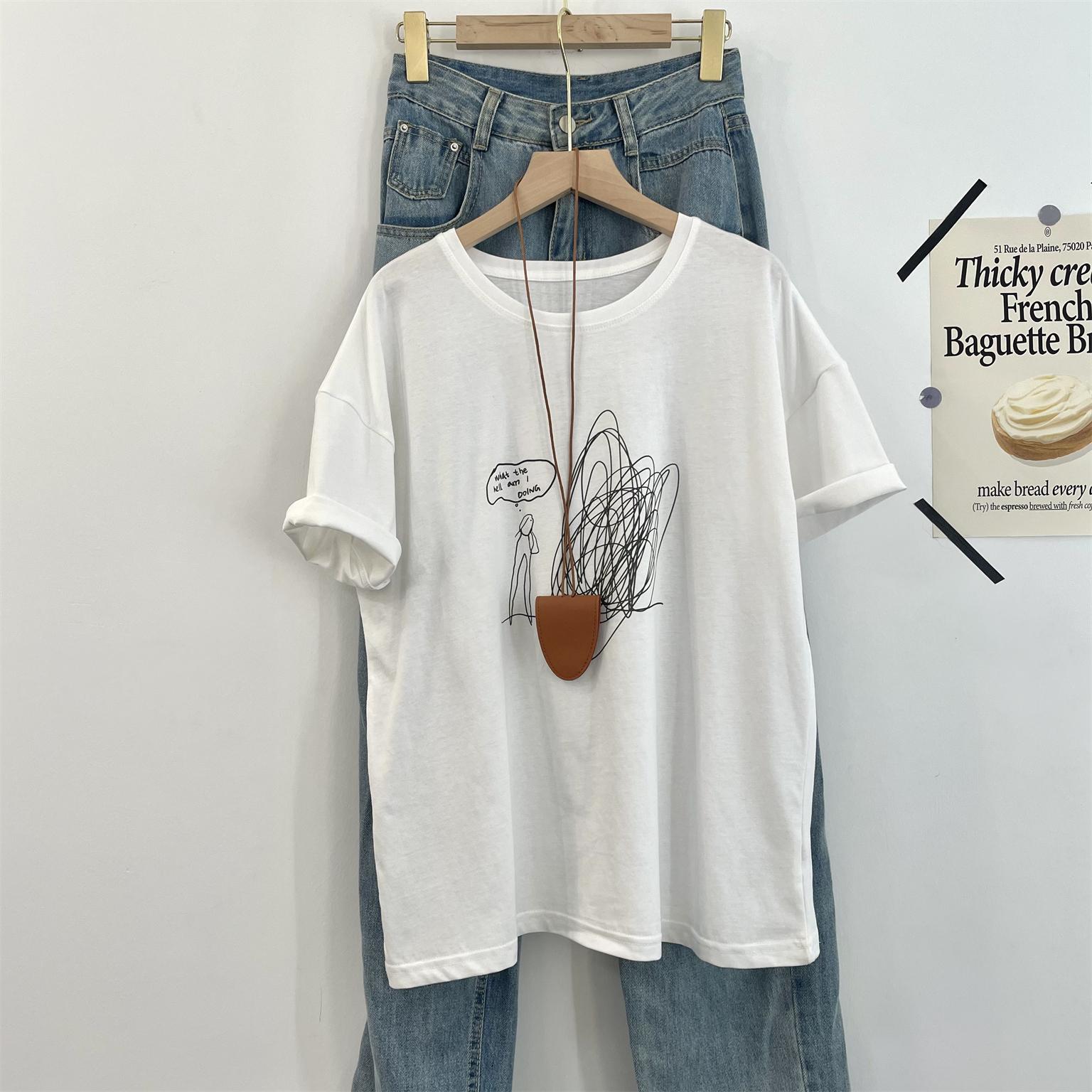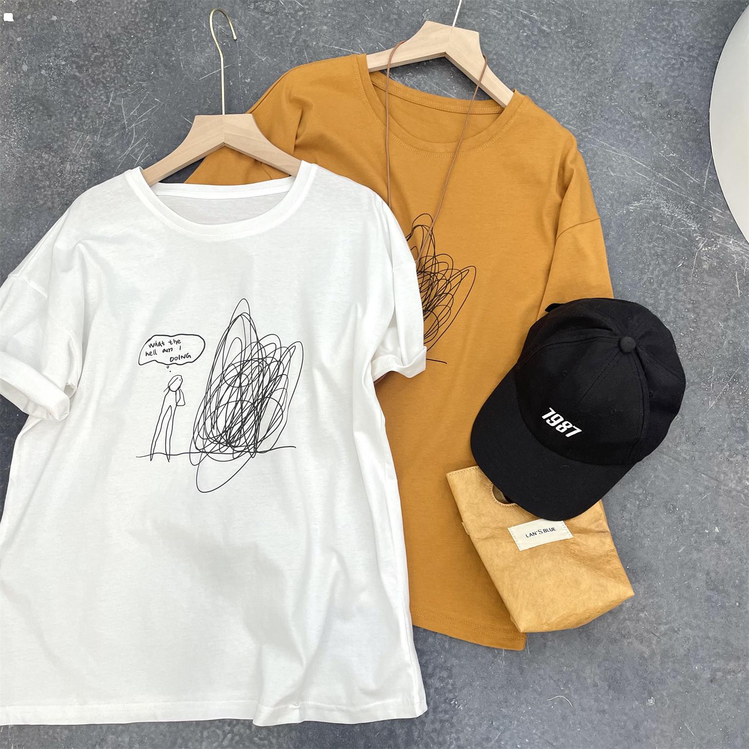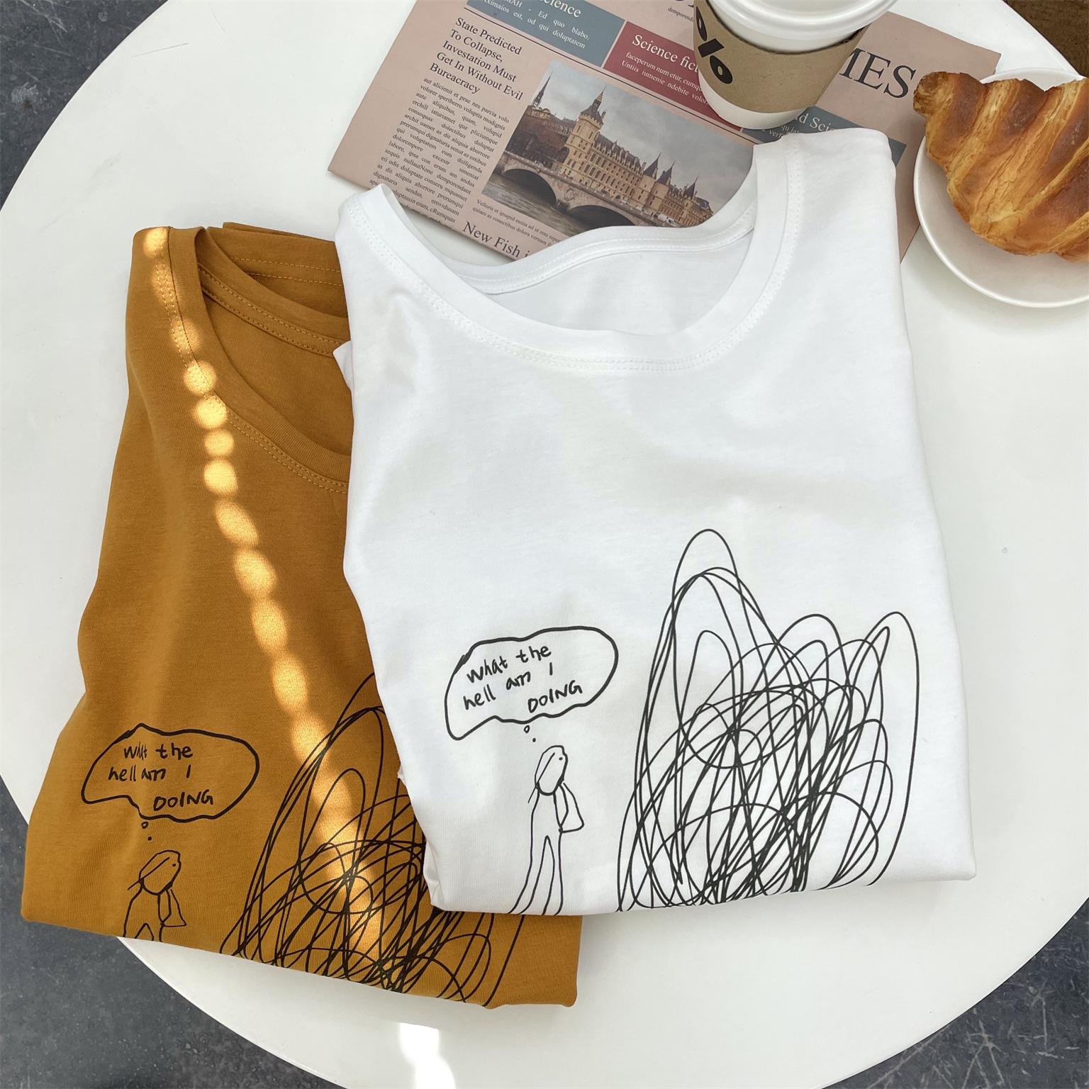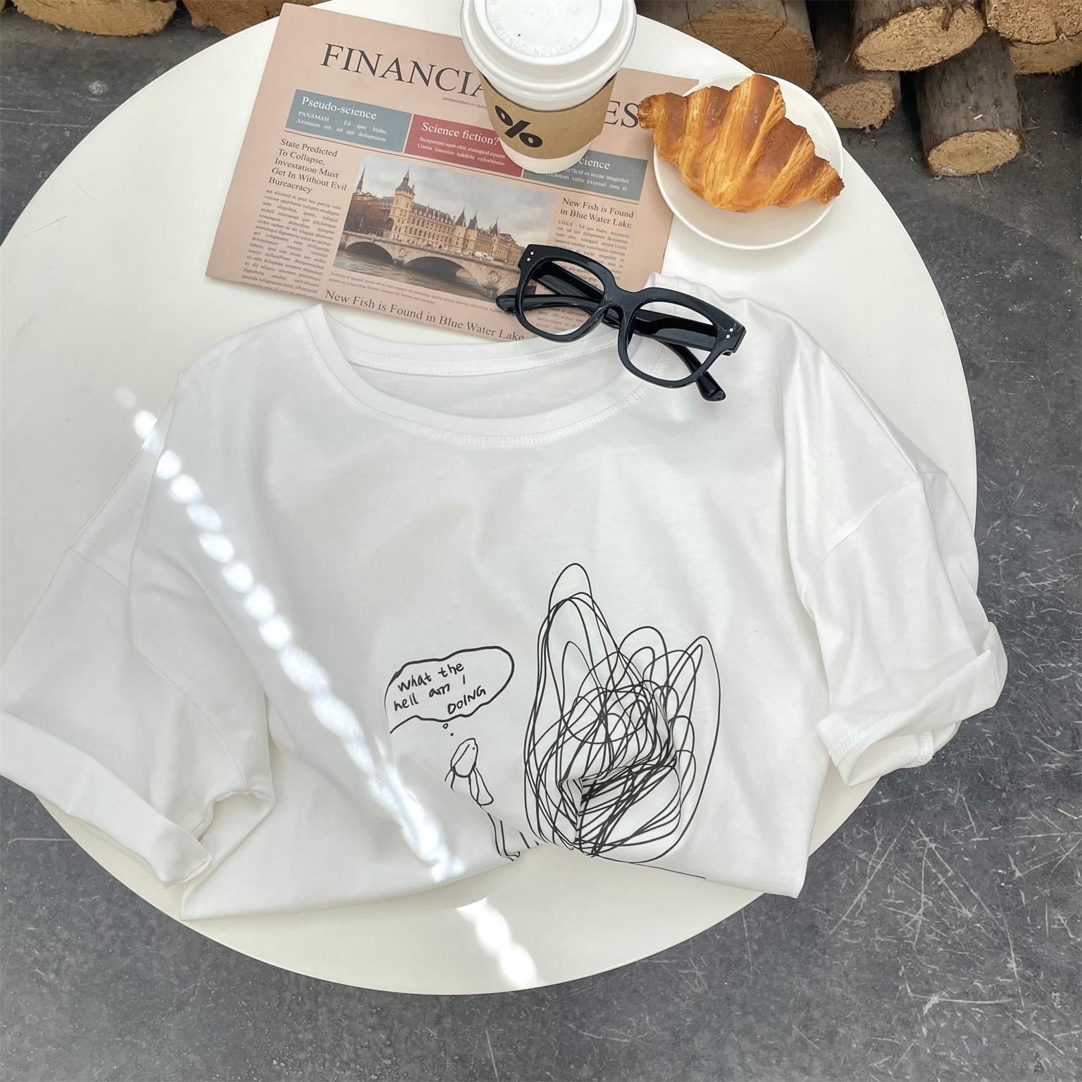 Camiseta de Manga Corta con Estampado de Patrón Creativo de Líneas para Mujer Nueva Moda Look Adelgazante Holgado Algodón Puro Cuello Redondo Jersey Top Verano