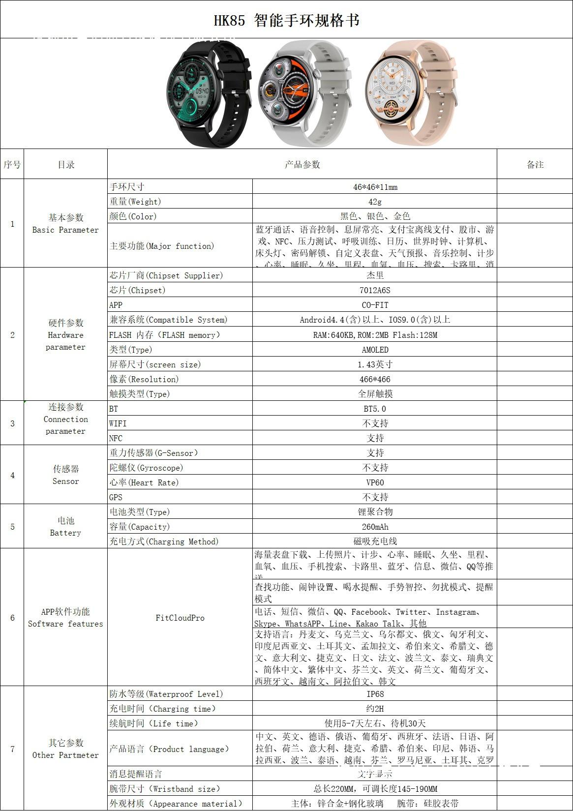 Nuevo Reloj Inteligente HK85 Pantalla Amoled HD Llamada Bluetooth Música Pulsera Oxígeno en Sangre Presión Arterial Deportes Mujeres
