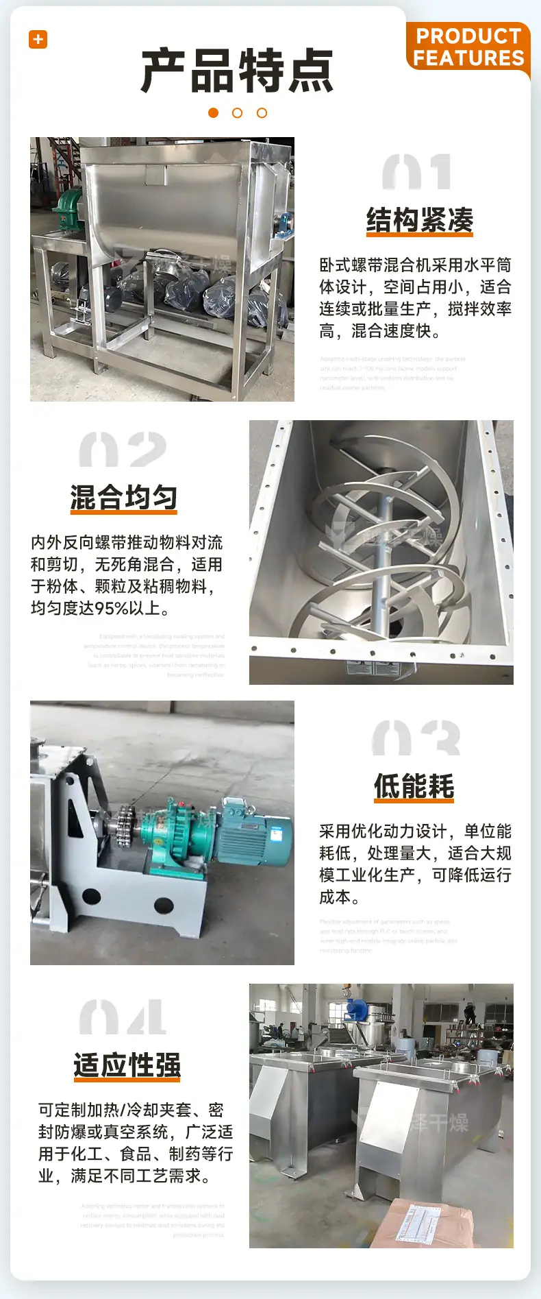 Mezclador de cinta de glucosa Mezclador de cinta horizontal de materia inorgánica Mezclador de acero inoxidable de partículas de plástico