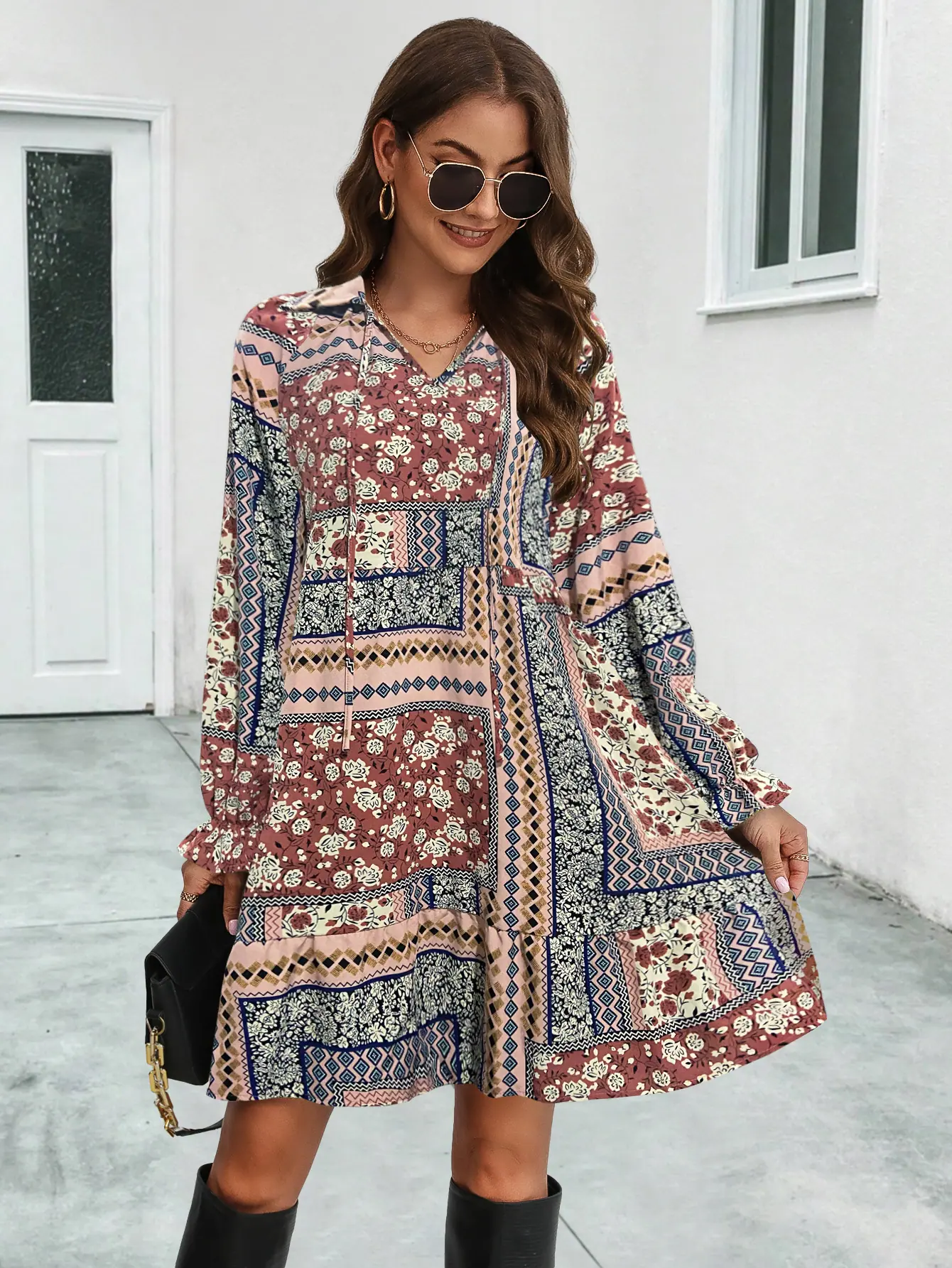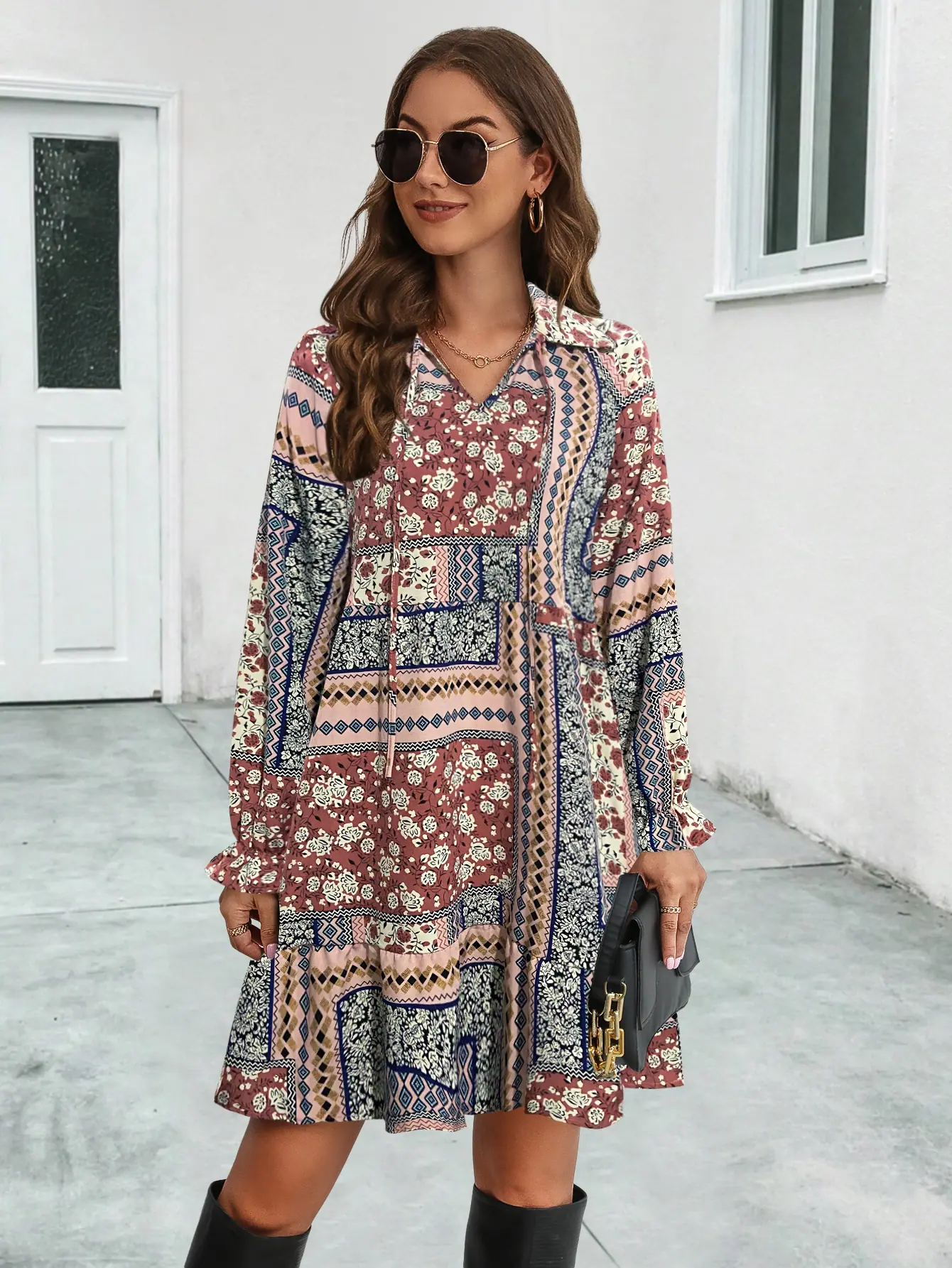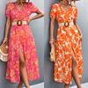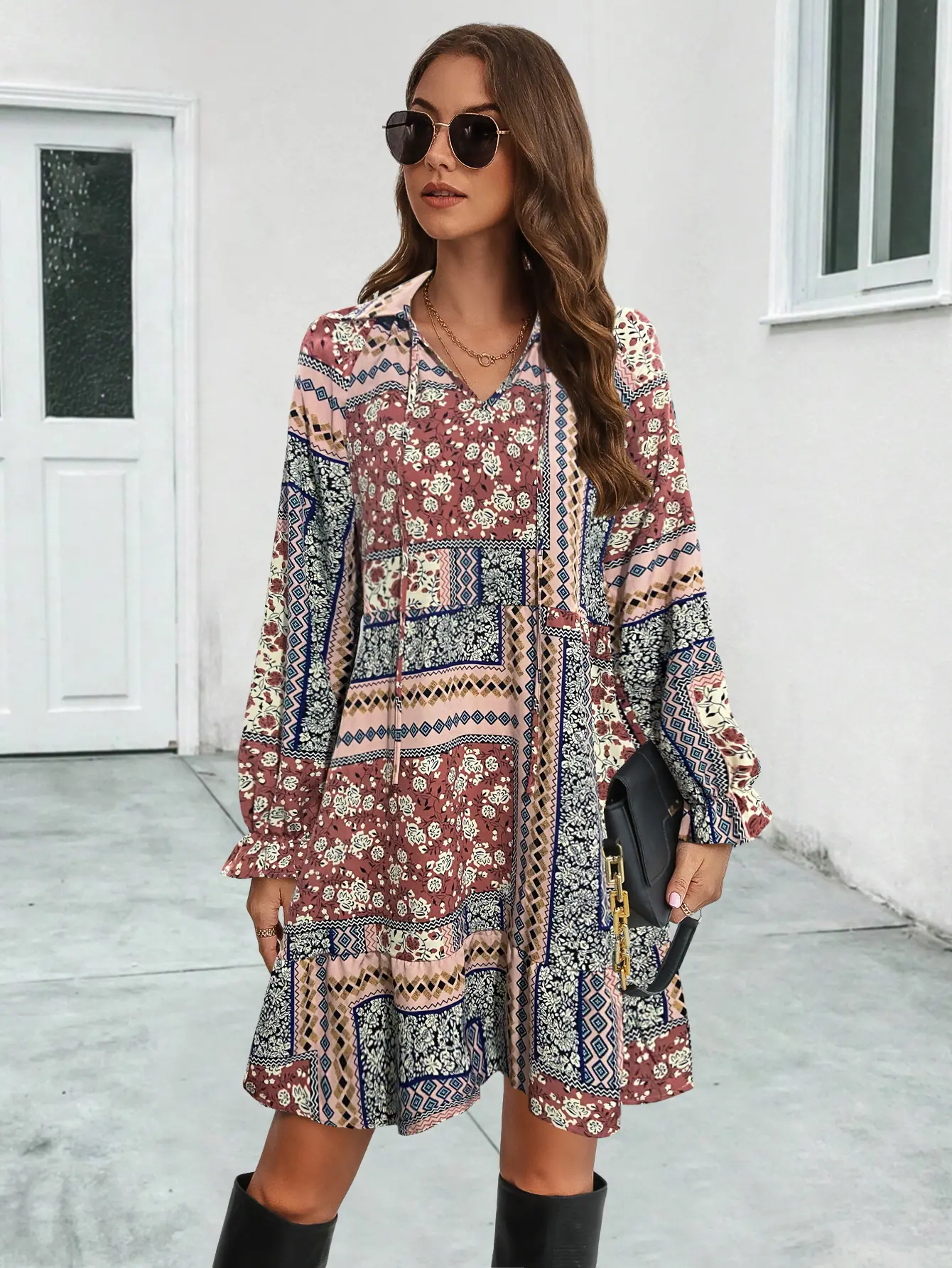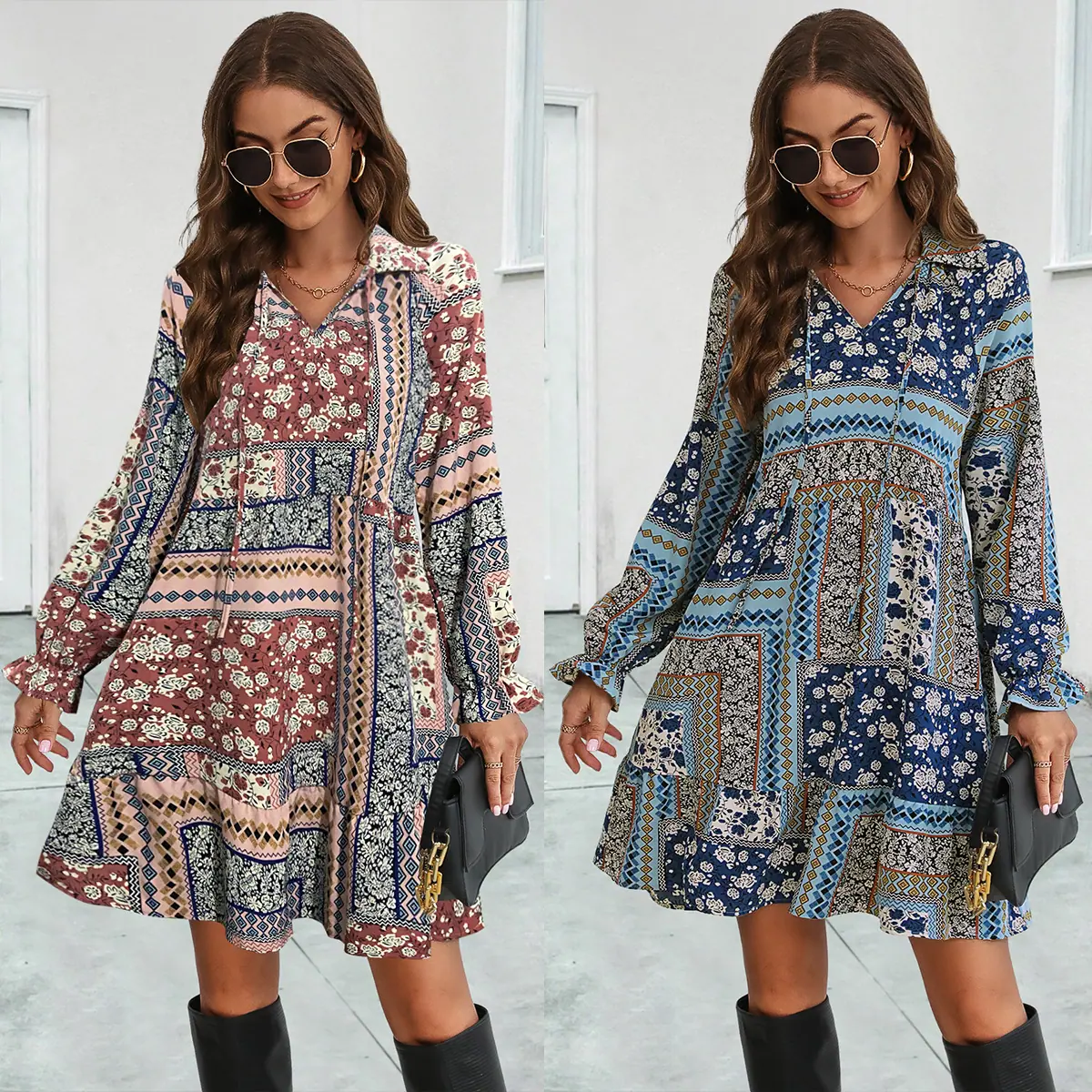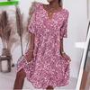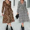 2023 Nuevo Amazon estación independiente superventas eBay popular transfronterizo Europeo y Americano vestido de manga larga estampado con cuello en V