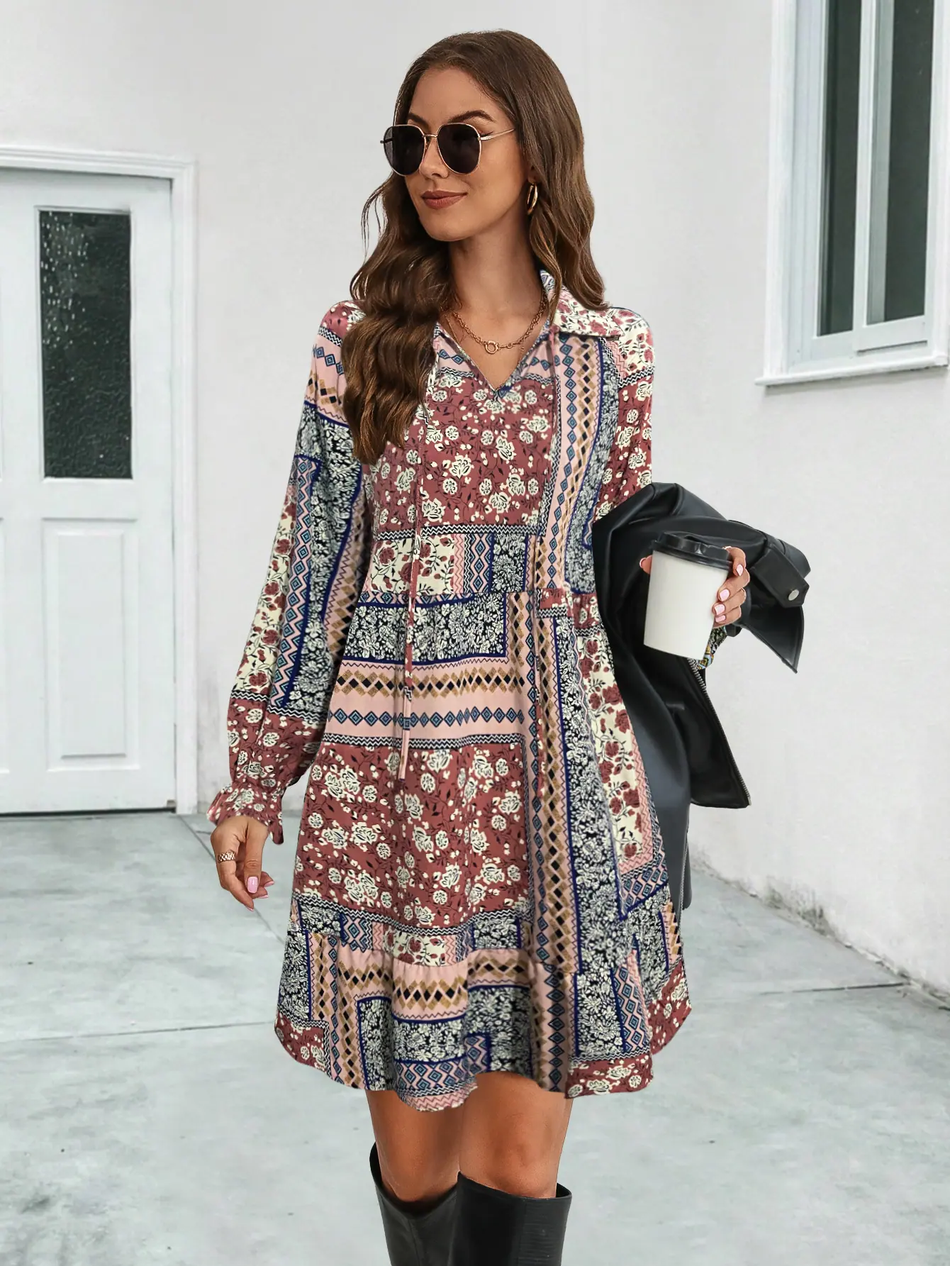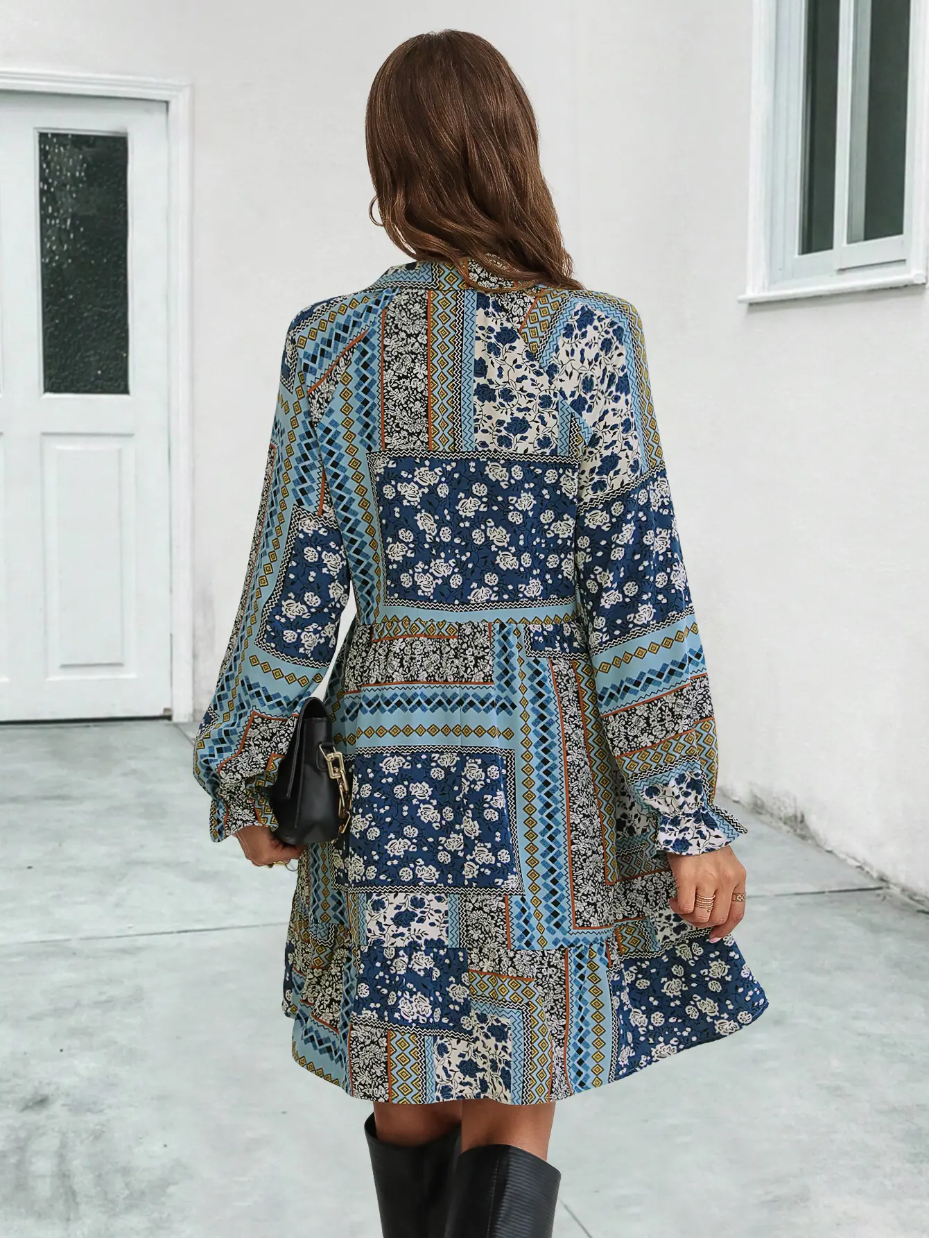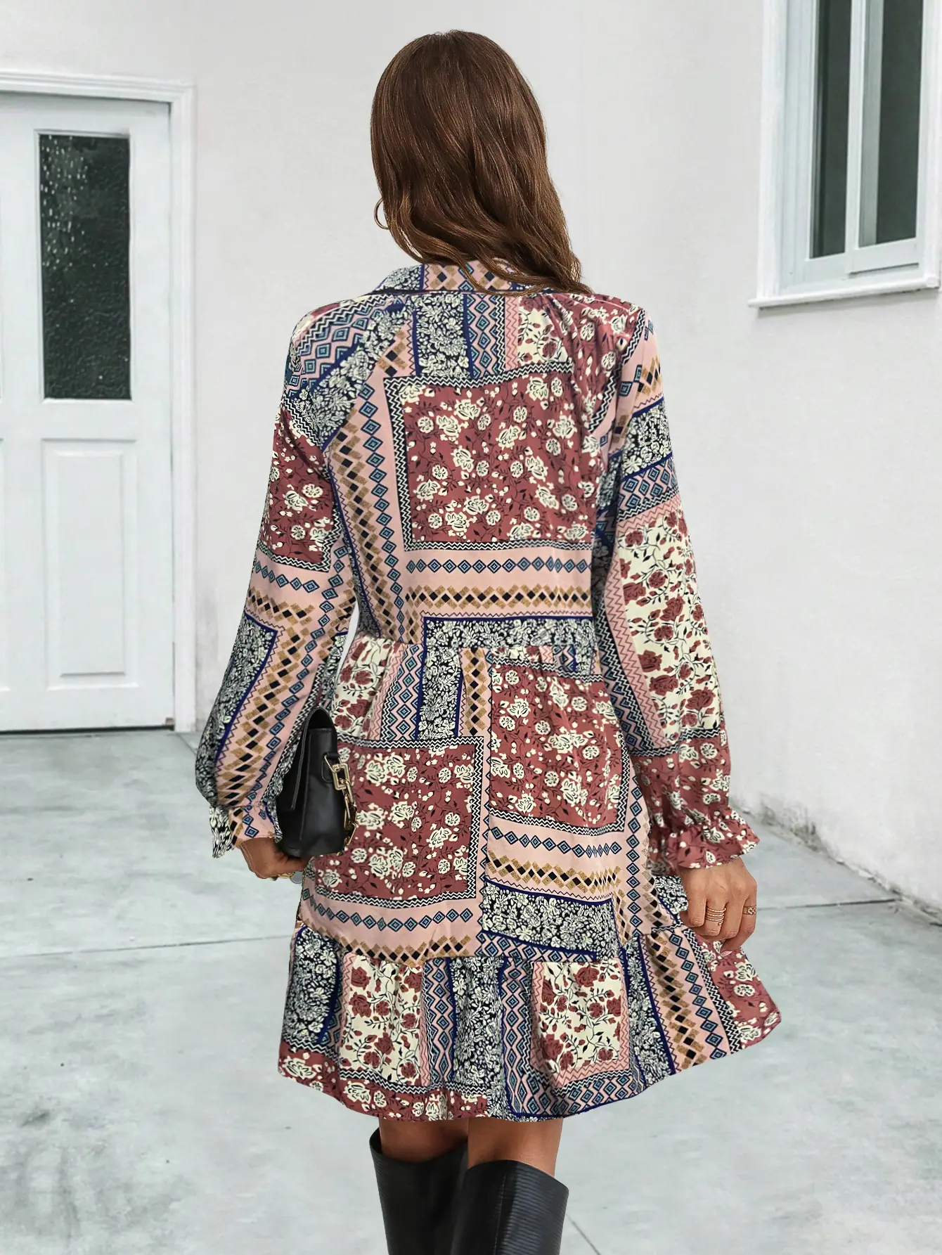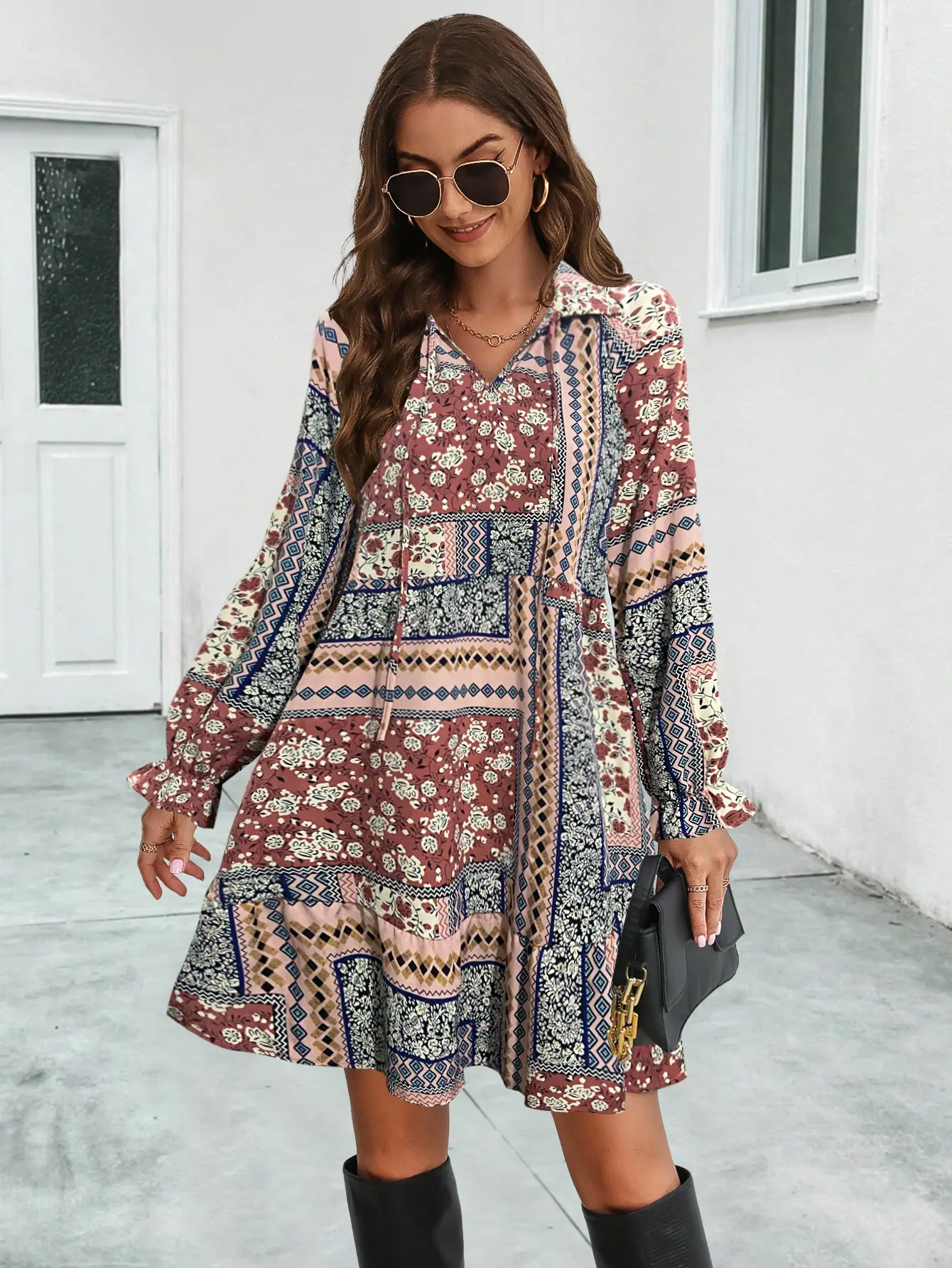 2023 Nuevo Amazon estación independiente superventas eBay popular transfronterizo Europeo y Americano vestido de manga larga estampado con cuello en V