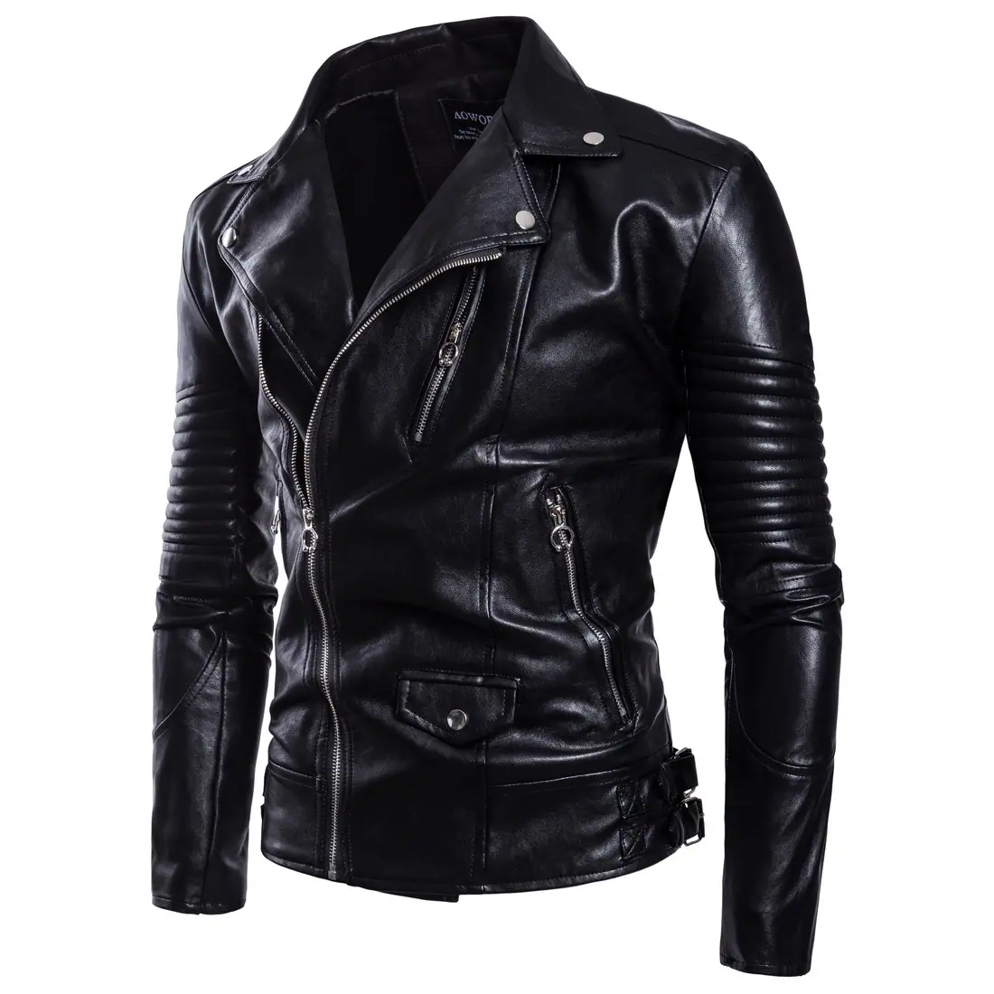 Moda talla europea 2020 otoño nuevo solapa para hombre motocicleta cuero para hombre comercio exterior chaqueta de cuero B029