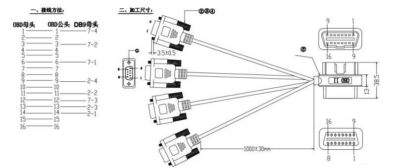 Nombre del producto:Conector OBD2 Macho y Hembra a 4 Interfaces DB9 Hembra Cable de Conexión para Herramienta de Diagnóstico
