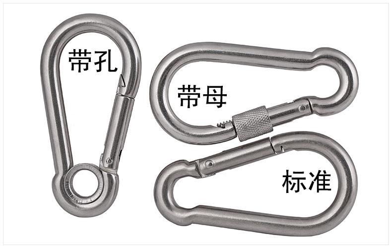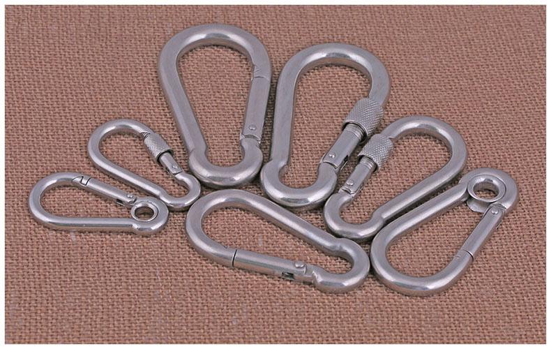 Hebilla de resorte de acero inoxidable 304, gancho de resorte, mosquetón, hebilla de calabaza, hebilla de colgado rápido, hebilla de seguridad, gancho simple