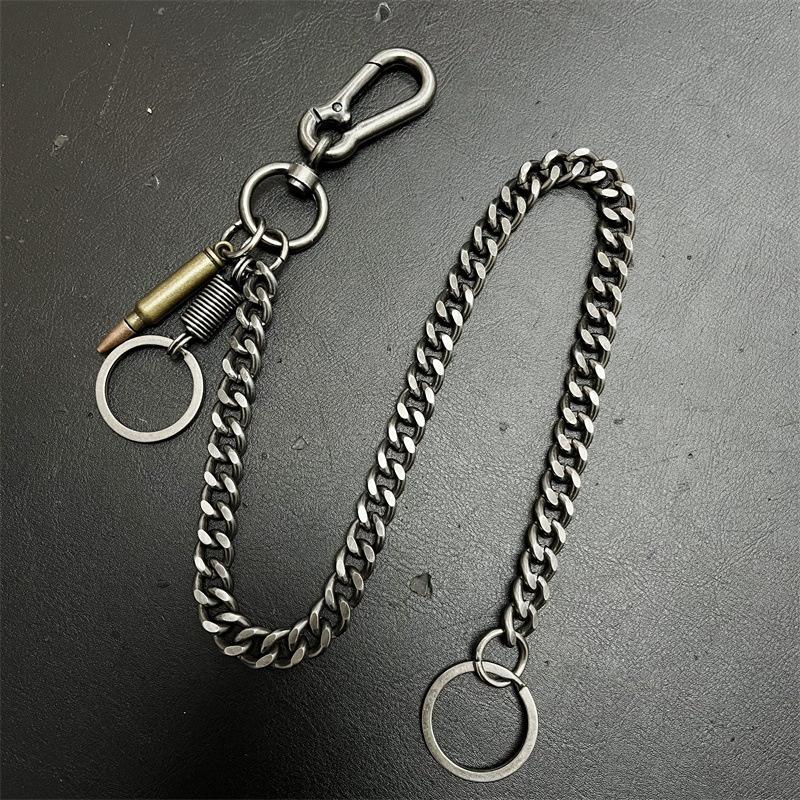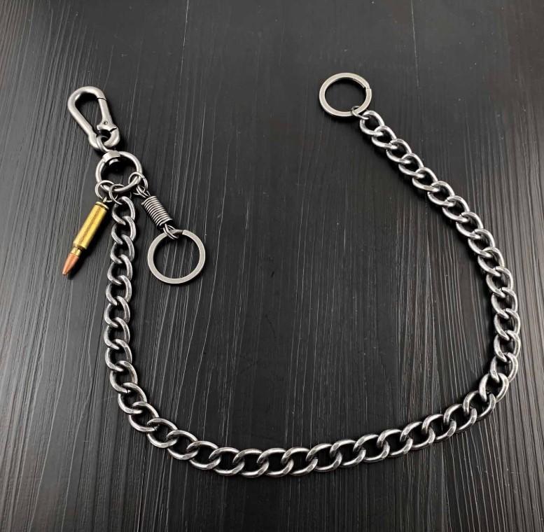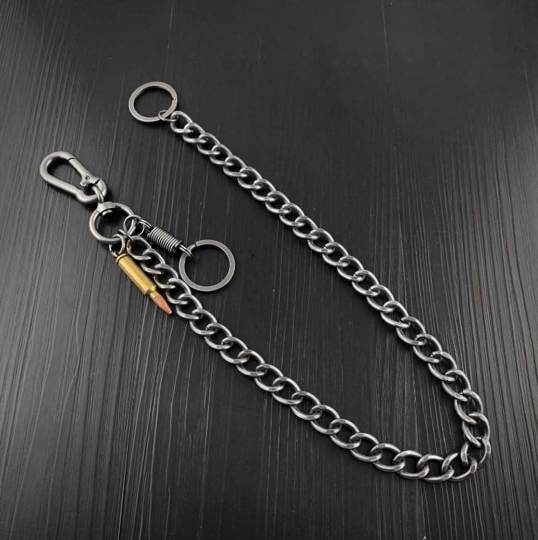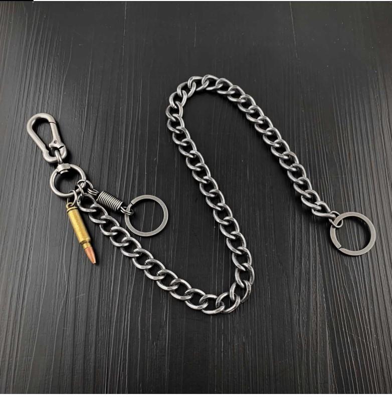 Una cadena para pantalones es un tipo de adorno que se cuelga en los vaqueros, popular entre las personas nacidas en los años 80 y 90, y que se introdujo desde Japón y Corea del Sur. Al principio, solo era popular entre quienes amaban Corea y Japón, pero con el tiempo se popularizó entre los jóvenes a la moda. Cadena para pantalones: una cadena que cuelga de los pantalones.