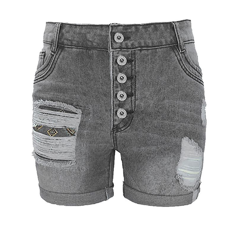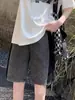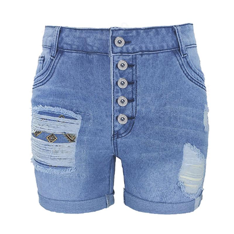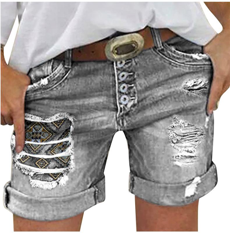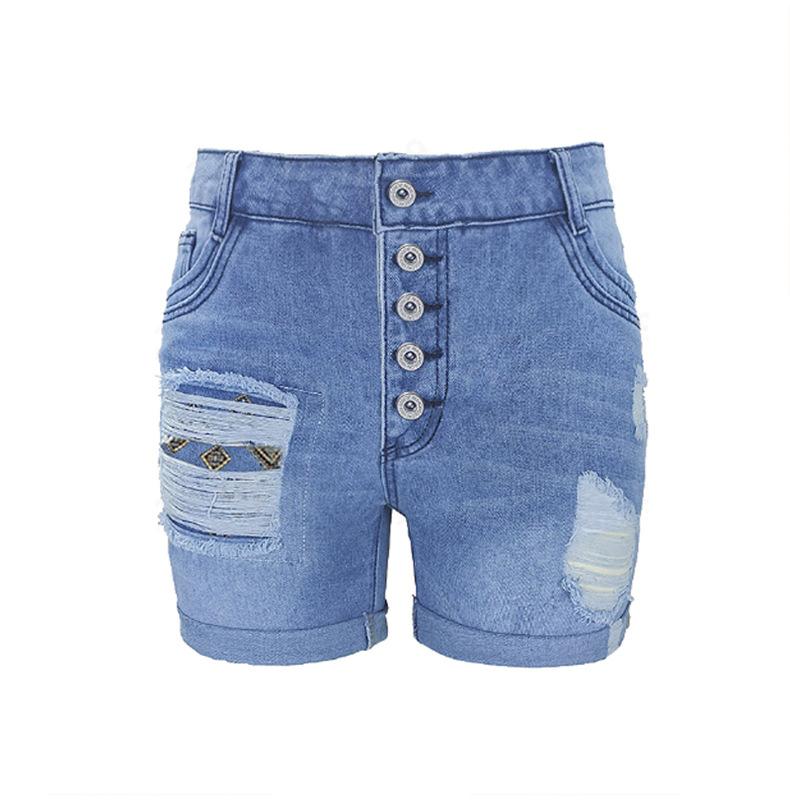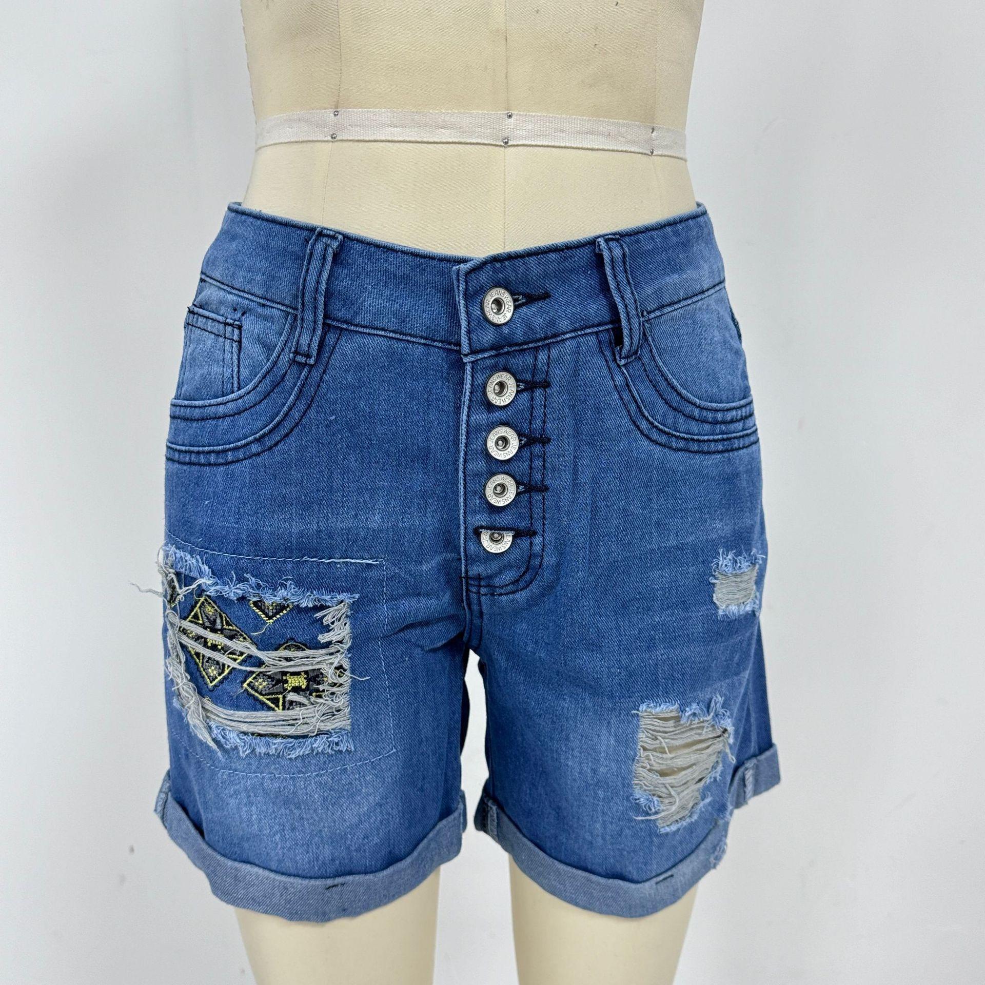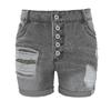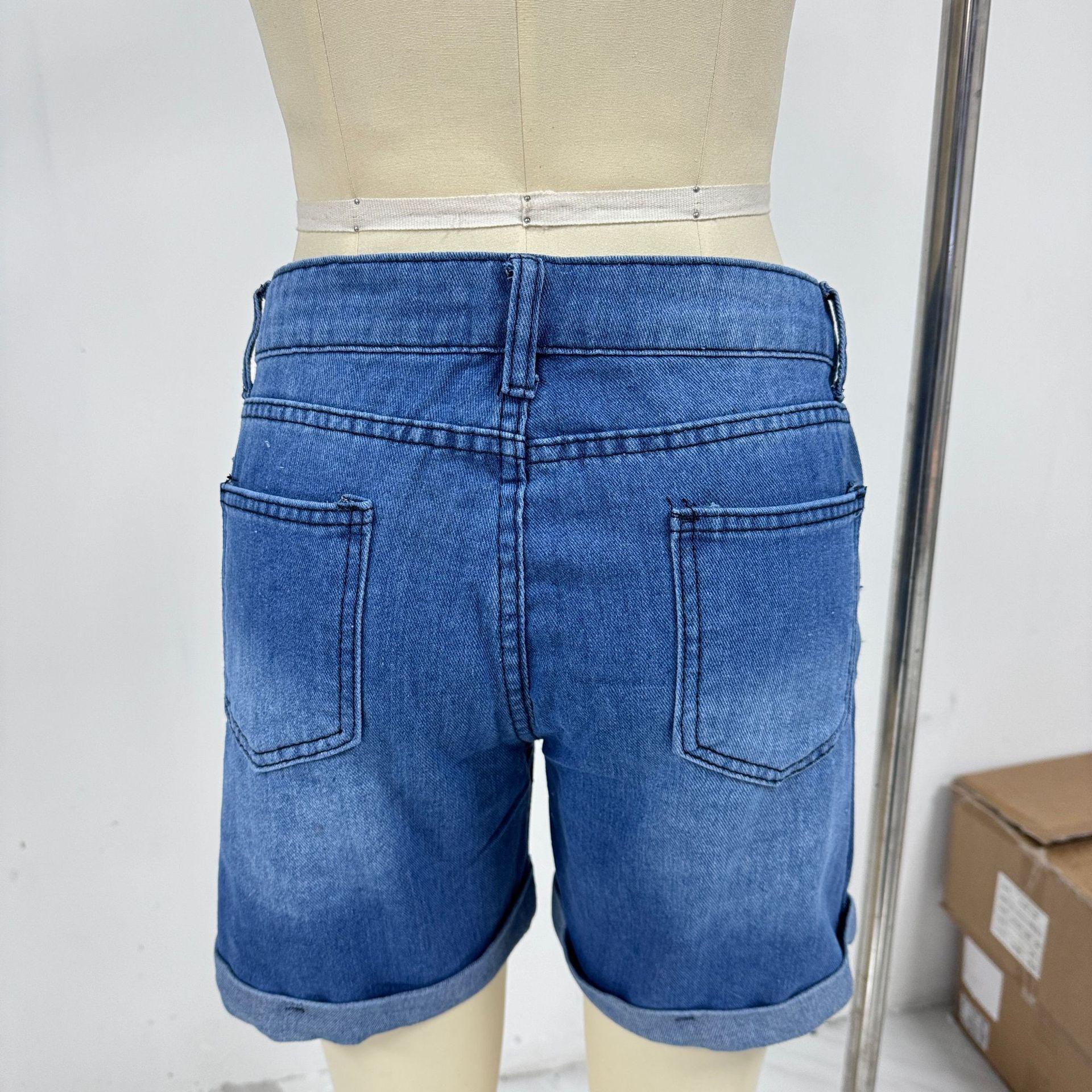 Suministro Transfronterizo Europeo y Americano Slim Solapa Sencilla Bolsillo con Volantes Dobladillo Enrollado Shorts de Mezclilla Rectos Casuales